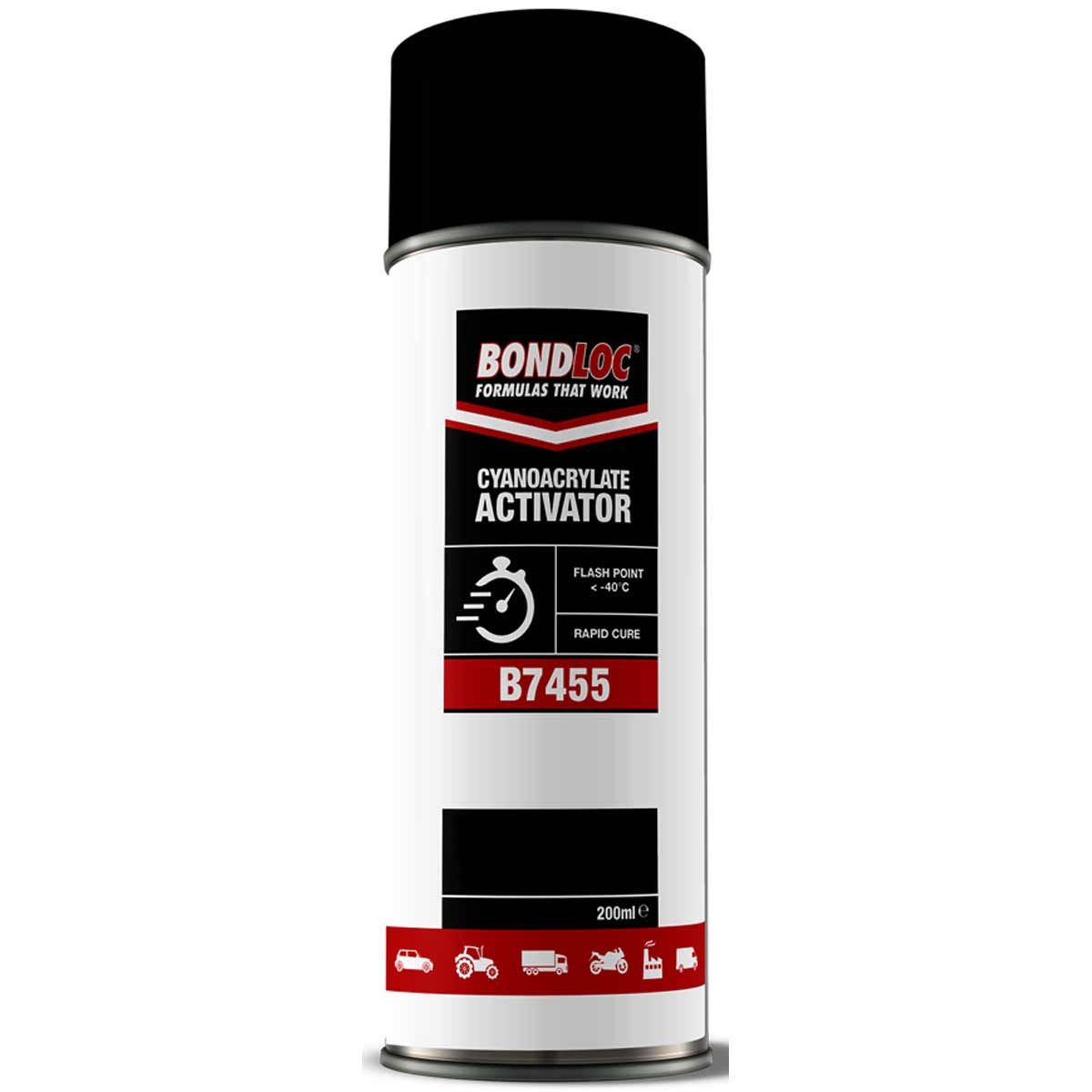 Bondloc B7455-200 activator for the rapid curing of cyanoacrylates both pre- or post- application to the bond area. Deposits the correct amount of neutralising ions on the surface, stimulating the adhesive and preparing the surface for bonding.