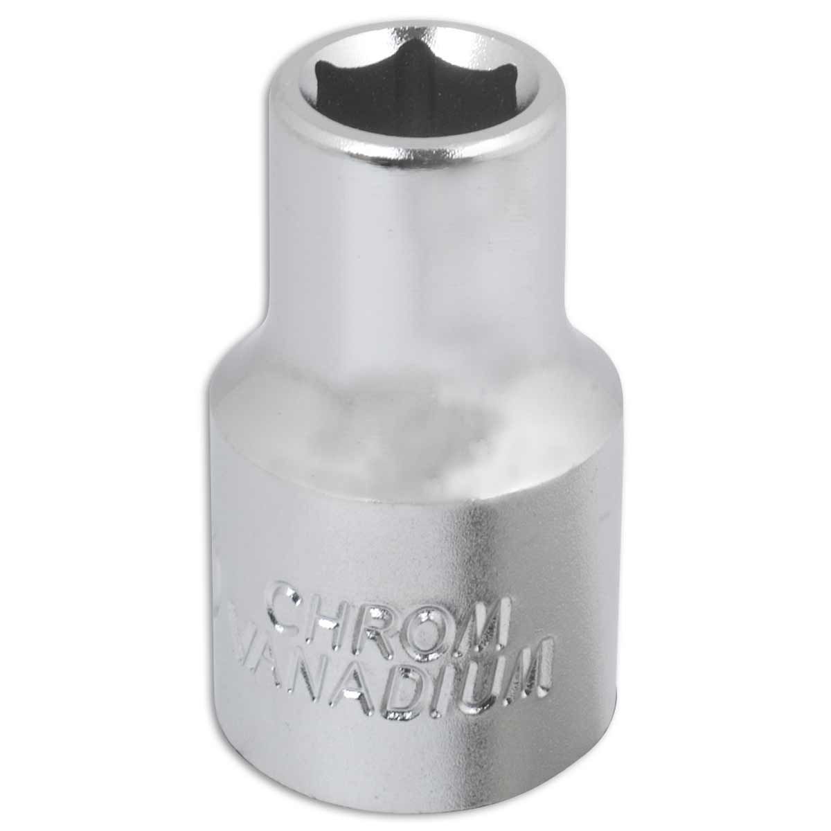 A standard 10mm single Hex 1/2″drive socket manufactured from durable chrome vanadium steel with a polished finish. The six-sided socket head drives from the flats to provide more torque, which is useful for freeing seized nuts and bolts, whilst avoiding the risk of rounding. The socket has slightly convex internal faces and drilled out corners for a solid grip, even on damaged fastener heads.