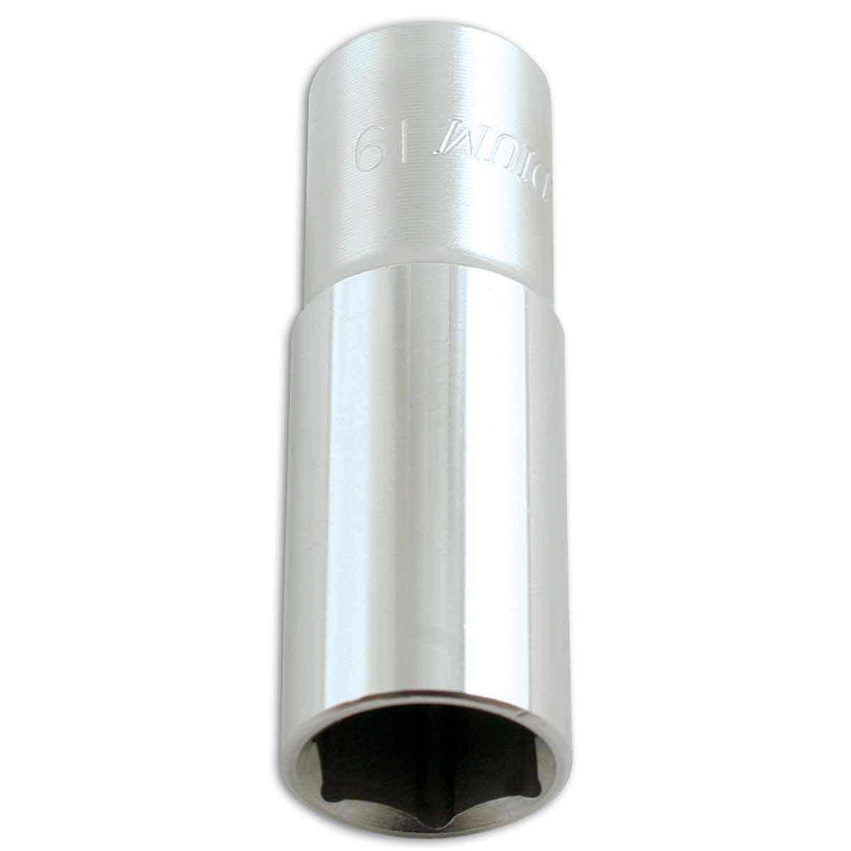 Deep 17mm single Hex 1/2″ square drive socket manufactured from durable chrome vanadium steel with a polished finish. Ideal for car engine maintenance and anywhere that regular sockets are too short for access. The six-sided socket head drives from the flats to provide more torque, useful for freeing seized nuts and bolts, whilst avoiding the risk of rounding. The socket has slightly convex internal faces and drilled out corners, for a solid grip, even on damaged fastener heads.