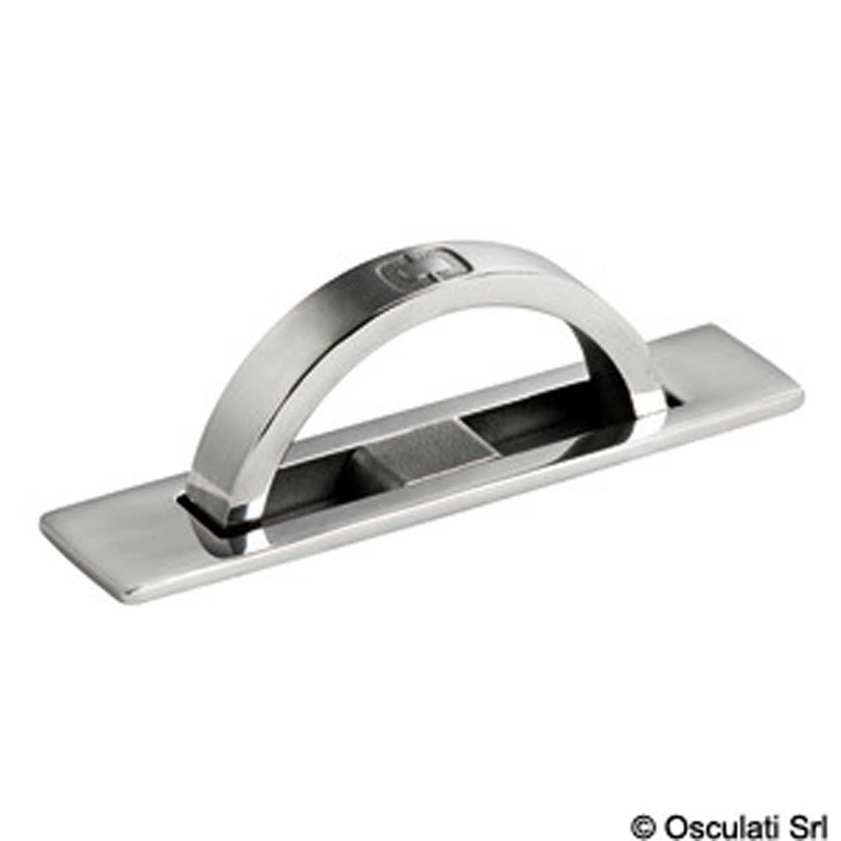Small stainless steel handle. The rotary opening system provides a large and ergonomic grip in a reduced space. For recess-fit mounting. Fitted with anti-vibration closing system.