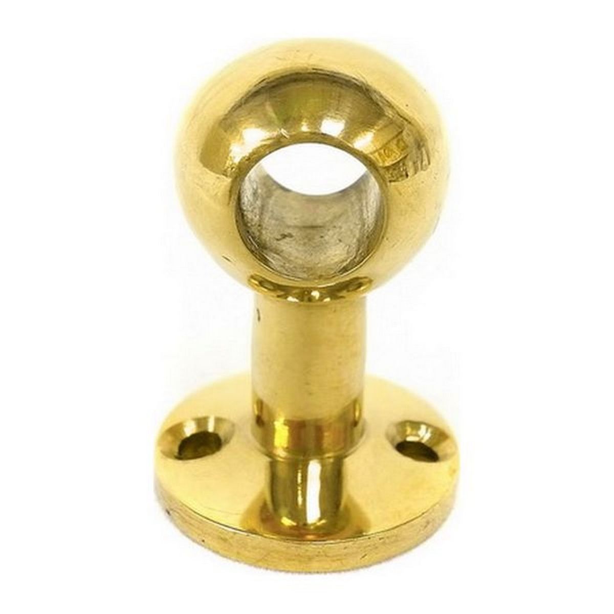 A short through ball post made of brass with 2 fixing holes for countersunk screws. The gallery ball post centre section measures 1″ outside diameter, 3/8″ inside diameter and 1-1/2″ high.