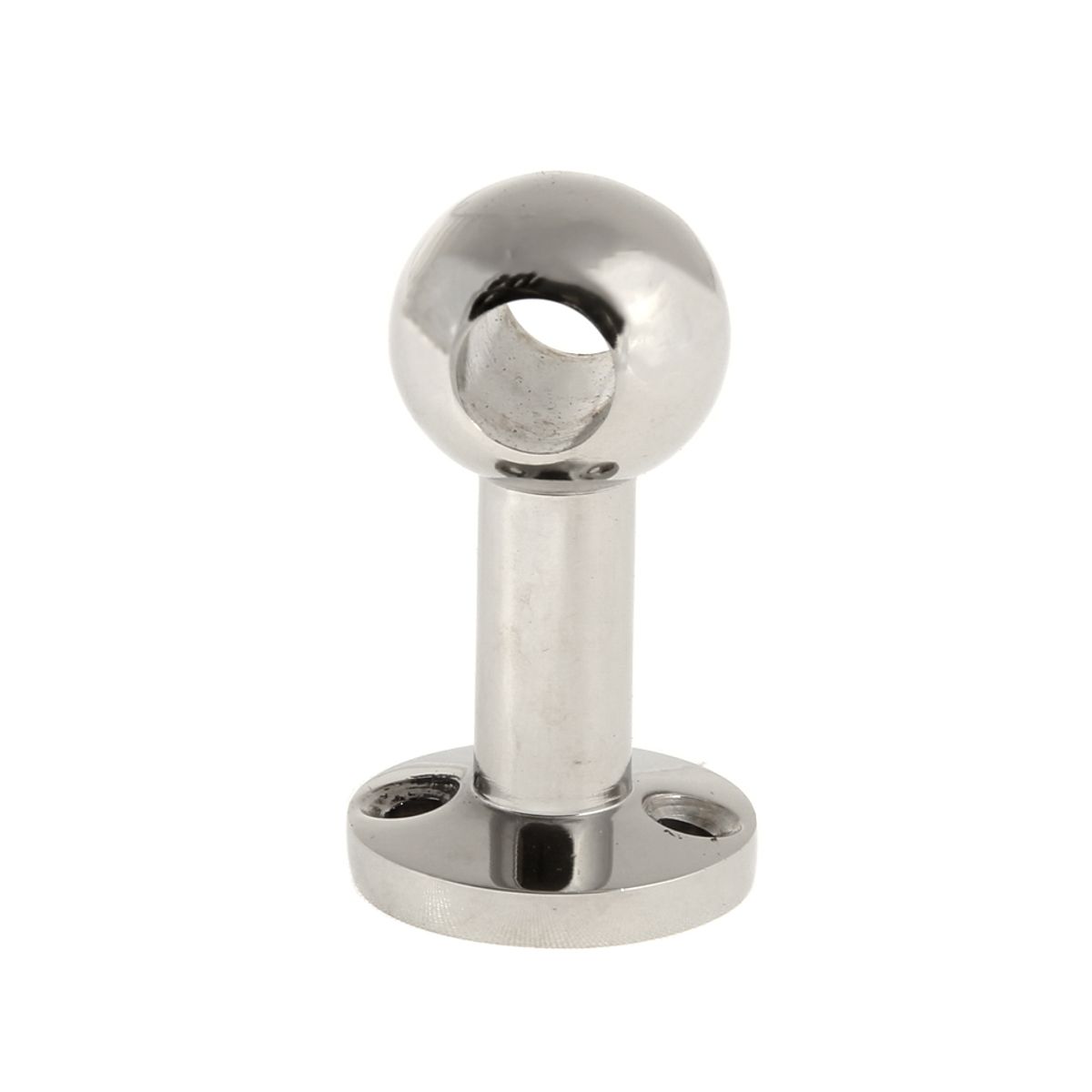 A tall through ball post made of satin nickel with 2 fixing holes for countersunk screws. The gallery ball post centre section measures 1″ outside diameter, 3/8″ inside diameter and 1-3/4″ high.