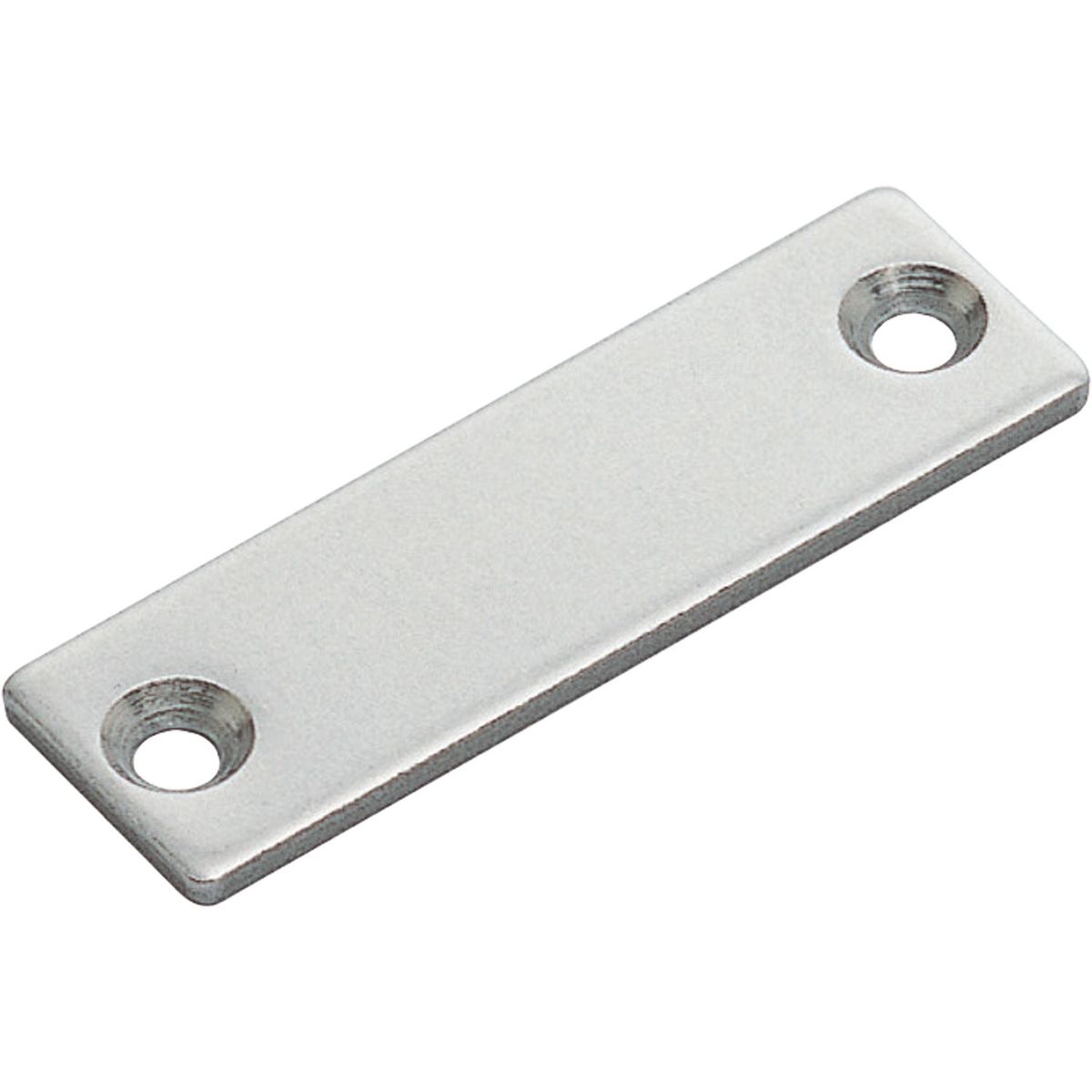 This magnetic lock counter plate is made of stainless steel with a polished finish. The counter plate features two 4.6mm mounting holes with 8.6mm diameter countersunk sections.