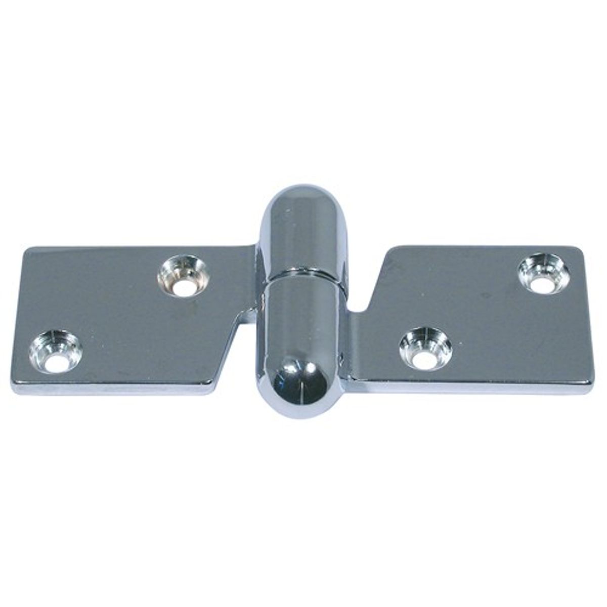 An offset lift off hinge with a sturdy chrome plated construction. This right hand hinge measures 100mm long by 45mm wide.