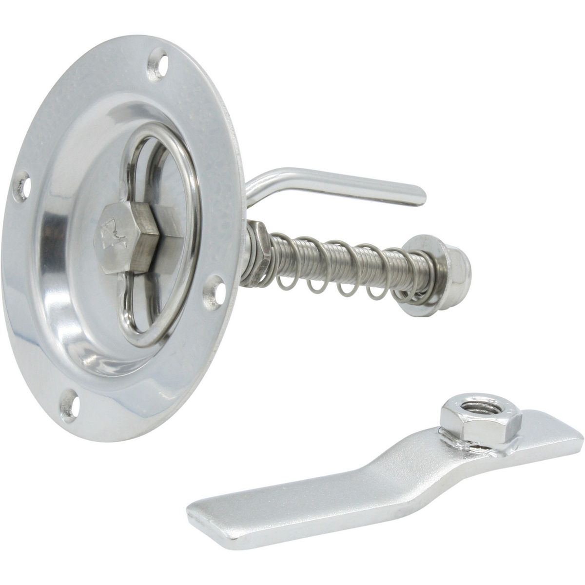 This Roca lift handle is made from electro-polished heavy duty stainless steel AISI316, suitable for the harsh marine environment. The handle folds down and fits in a recess which requires a 70mm diameter cut out. The lifting handle is lockable and features a retrogressive spring and stop.