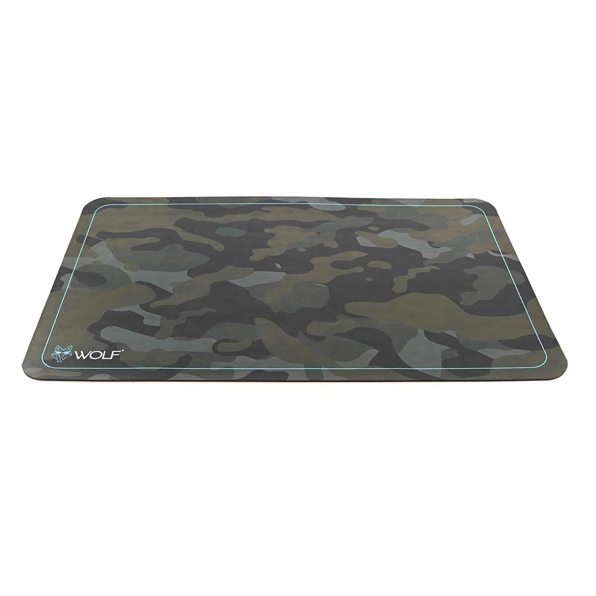 The mat is designed with the Wolf MCG Camo pattern. Its instant suction capability ensures it adheres well to various surfaces and its quick-dry feature allows it to be ready for use again in a short time.