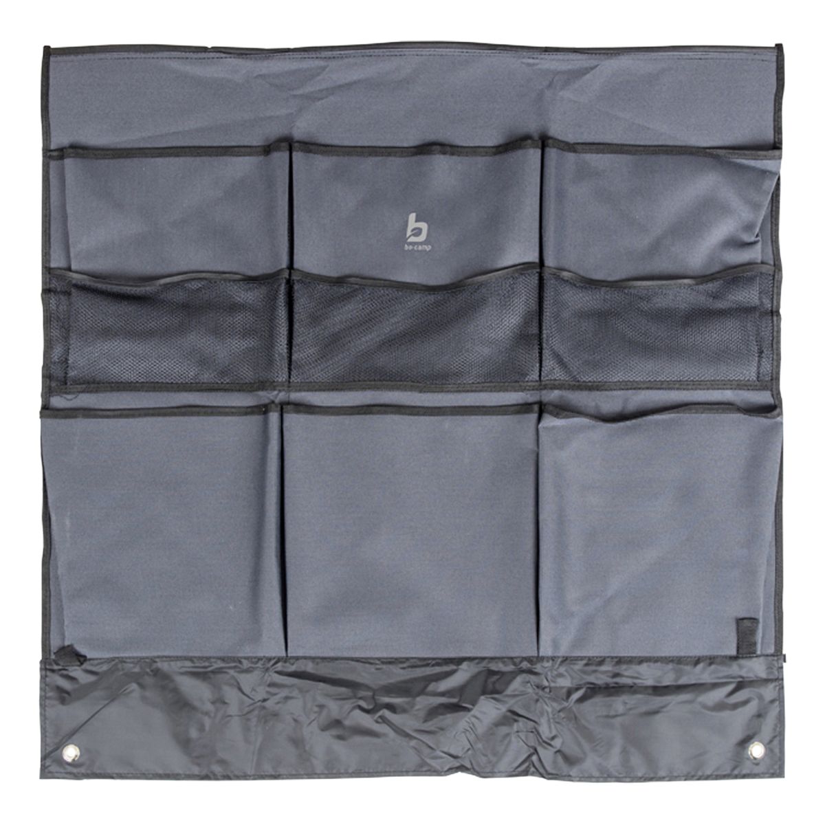 A handy straight organiser for around a wheel. This wheel organiser is easy to attach by means of a string. The organiser has a double function, protecting the wheels and providing extra storage space. The wheel flap has six compartments and three small mesh compartments. The wheel organiser has eyelets and loops through which the wheel flap can be properly tensioned under all caravans.
