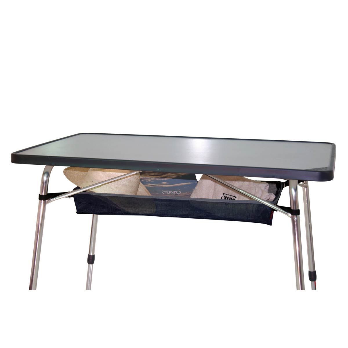 Net for use under the table top. Ideal for storage of newspapers, magazines, a telephone or other items. Can be used for all brands of camping tables due to the Velcro fastening.