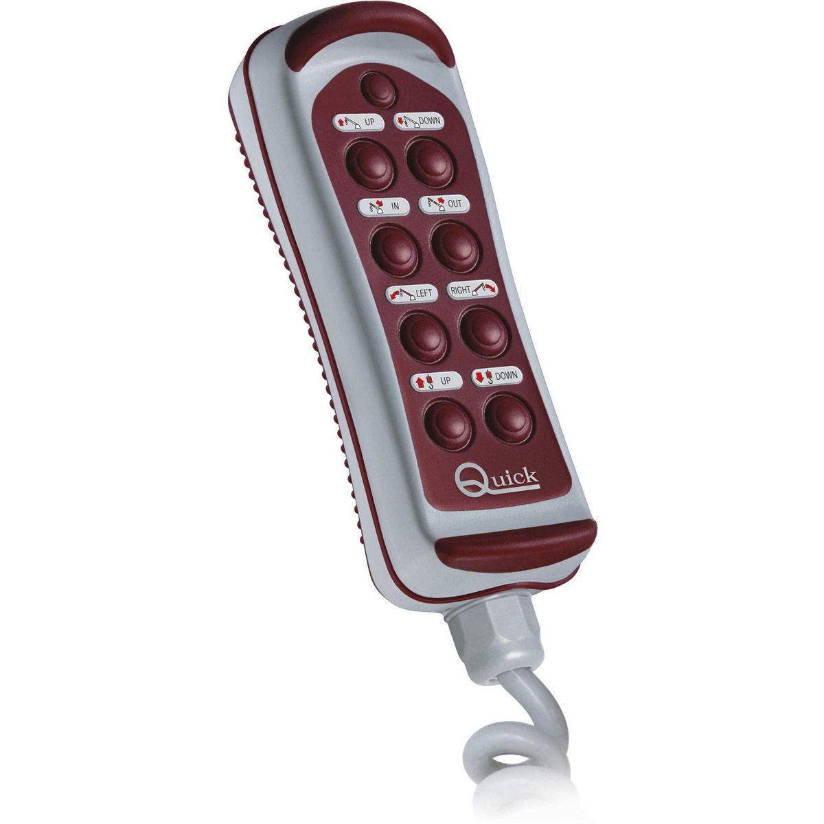 The Quick HRC is a multi-purpose hand-held remote control, designed for remote operation of various electrically operated systems on-board a boat, including: mini-cranes, gangplanks / gangways, windlasses / anchor hoists, sea ladders / swimming ladders. The HRC control is constructed with rubber inserts to ensure it is completely watertight with high strength, long durability and a secure grip. The Quick remote control is supplied complete with a connecting cable extensible up to 4.2 metres, a watertight deck plug and socket and a support bracket for storing after use.