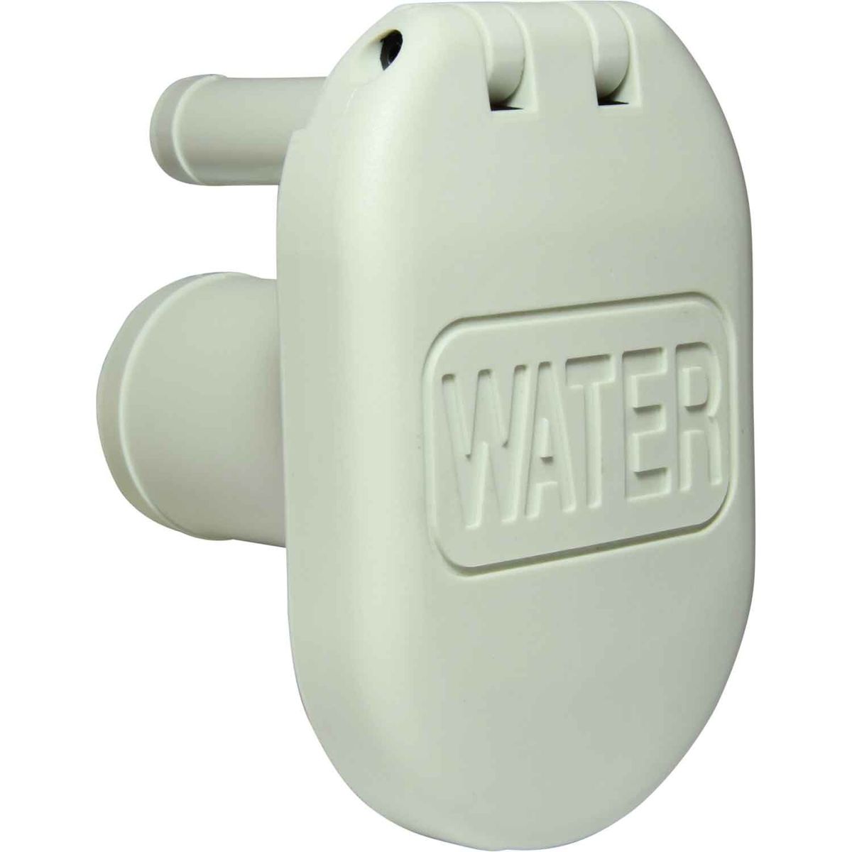 The Perko vented water deck filler is constructed from white polymer with a flip top cap. The water filler features a 38mm (1-1/2″) water filler hose connection and an integral tank vent with anti surge valve and a 16mm (5/8″) vent hose connection.