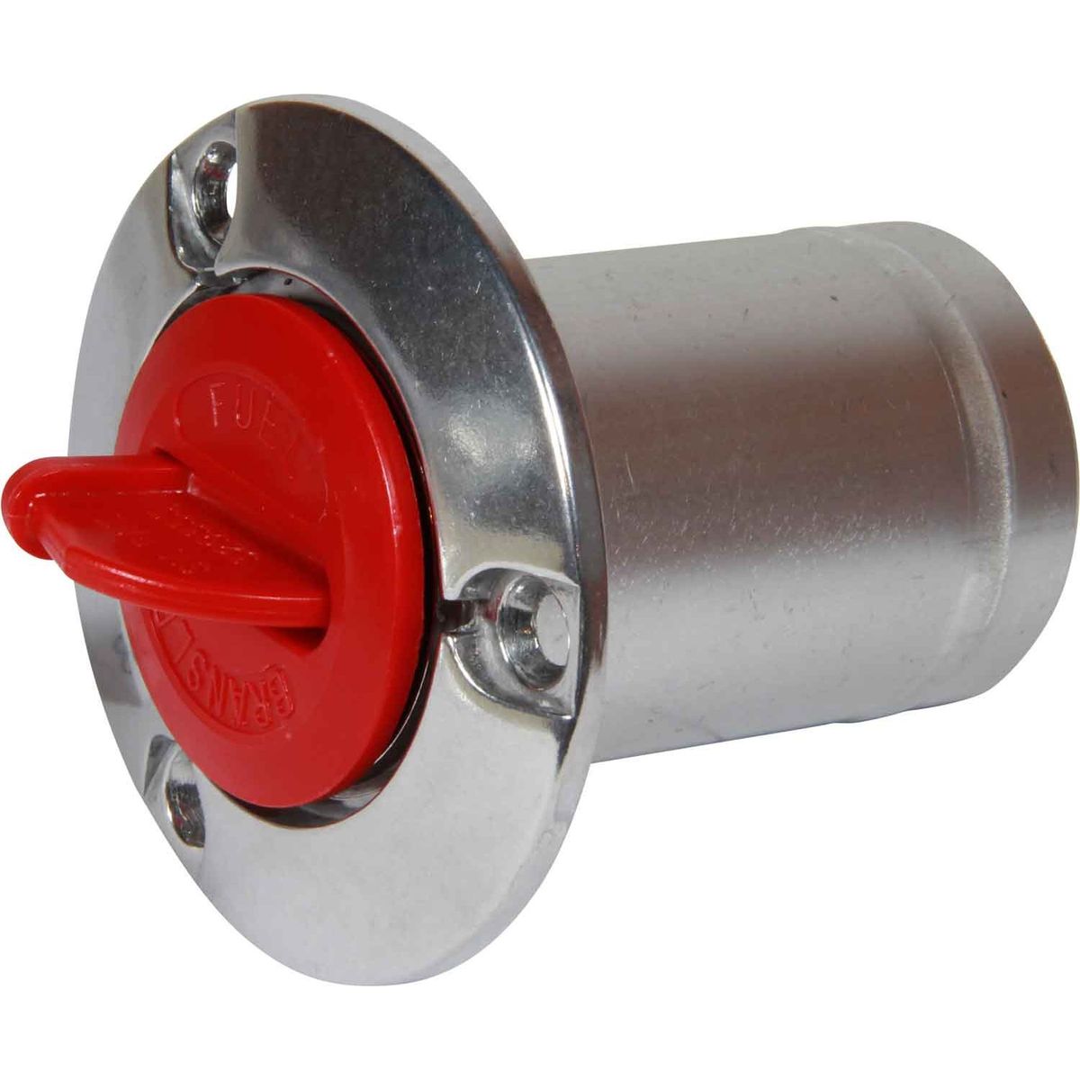 The Roca diesel filler is constructed from marine grade anodized aluminium and suits 51mm (2″) inside diameter fuel hose. This fuel deck filler features a red plastic flip-up cap and three countersunk fixing holes.