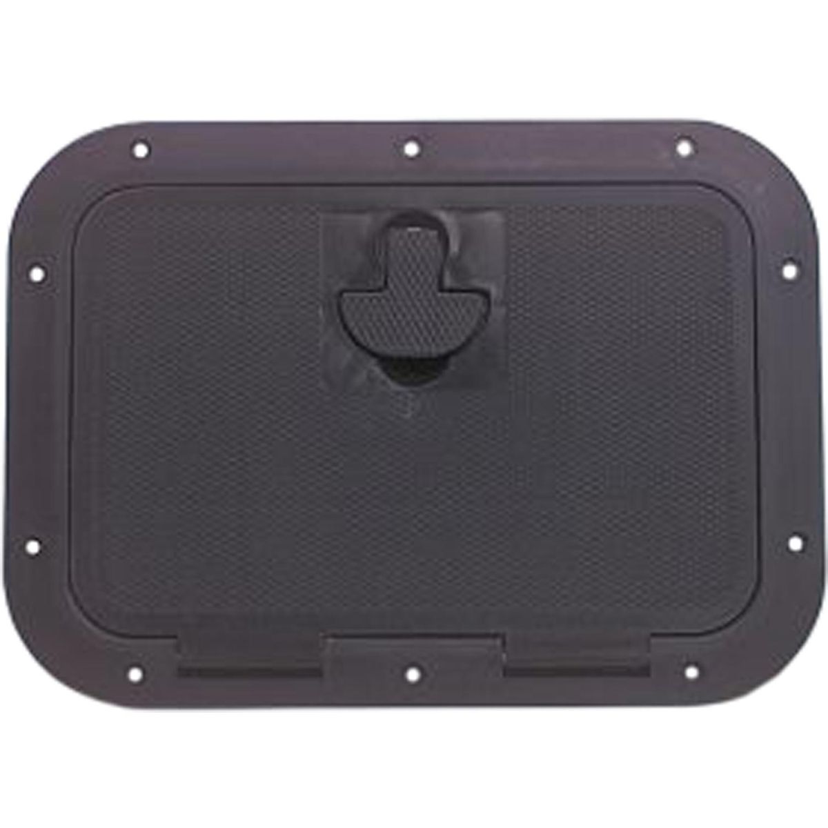 Black flush inspection hatch made from UV stabilised resin plastic. The moulded low-profile design features a flush-folding T-handle for easy operation. The hatch handle also features stainless steel hinge pins and is fully gasketed. Features an ‘anti-skid’ finish and measures 210mm x 290mm (8″ x 12″).