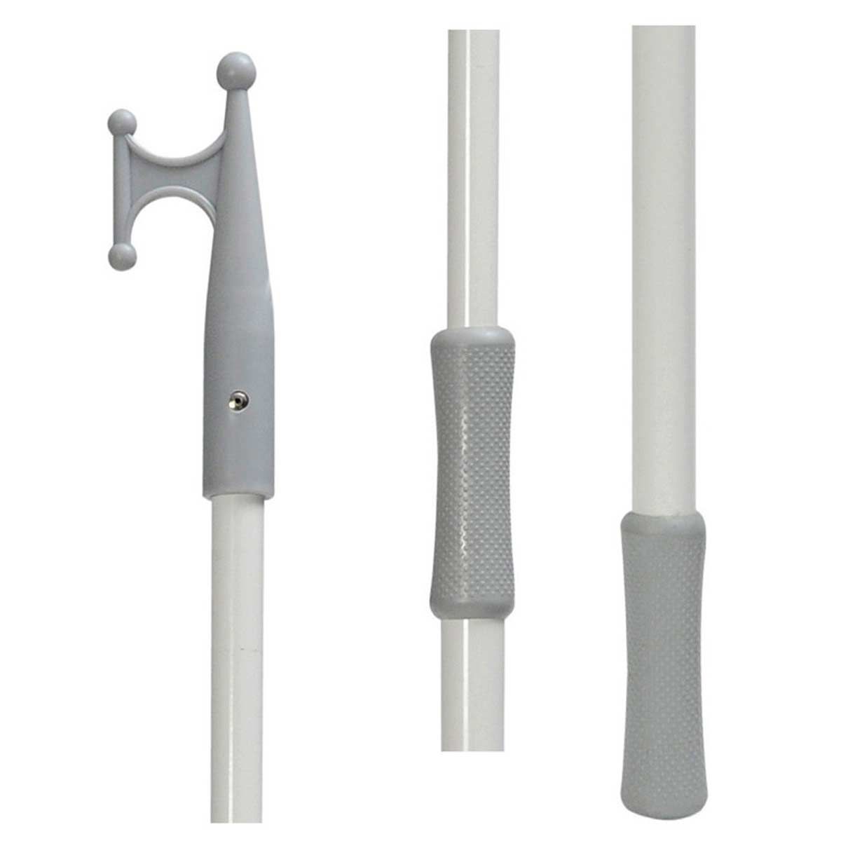 Grey nylon hook, epoxy resin coated aluminium handle with double knob grip.