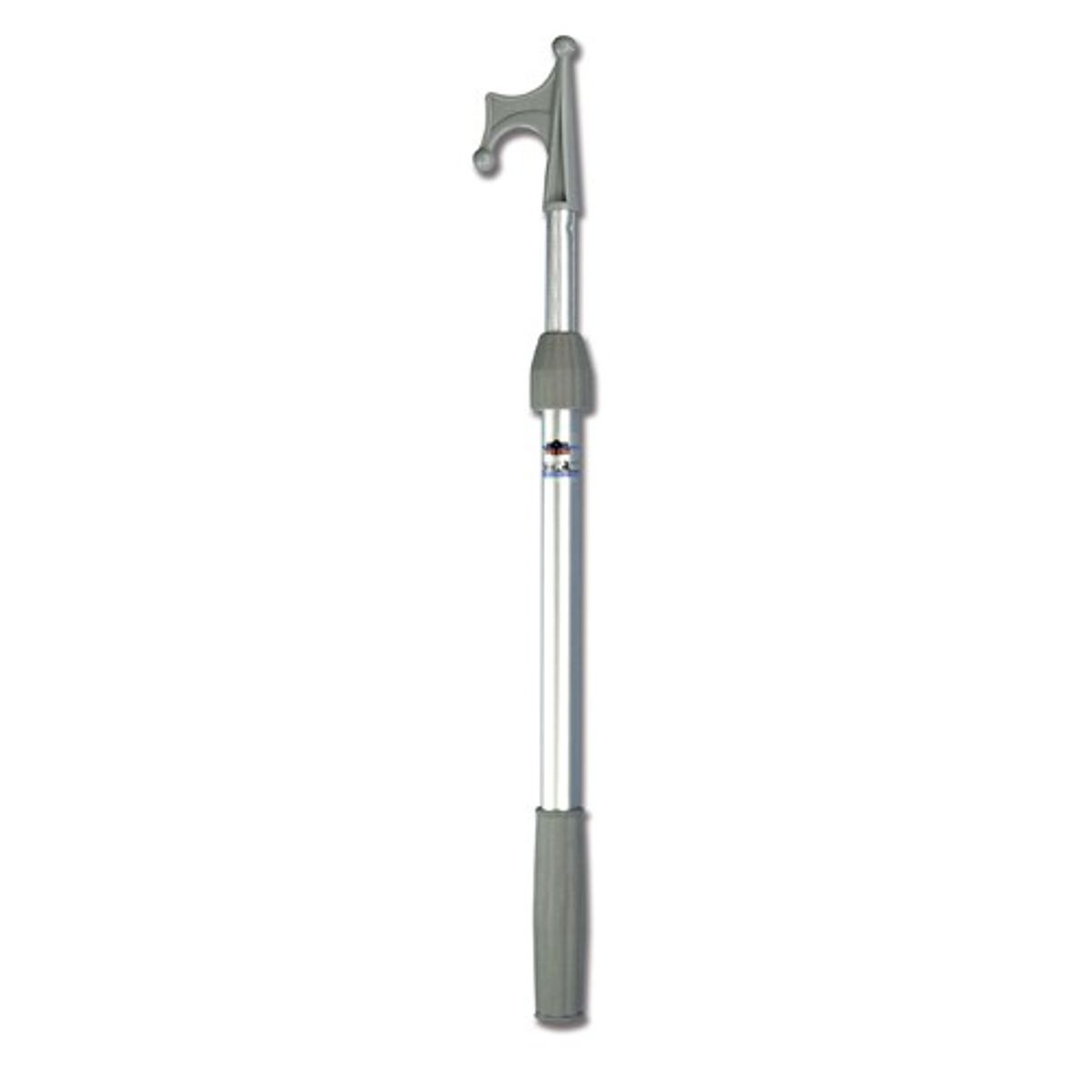 Extending boat pole and hook in silver anodised aluminium with rubber grip and nylon hook. 25mm diam. 2 telescopic sections adjust from 1.2m to 2.1m long.