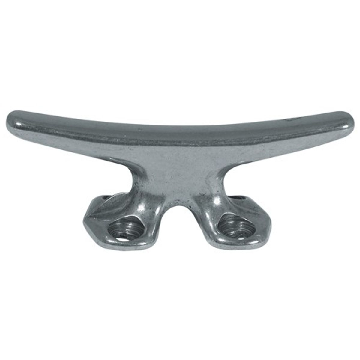 Pressure die cast chrome plated brass sheet deck cleat in a polished chrome finish. To be attached to the deck or any other flat surface, attached by 2 different points with a total of 4 screws. It has a gap at the base so a spliced eye can be run through in needed. Hole Centres 12mm width & 18mm length. Not supplied with fixings.
