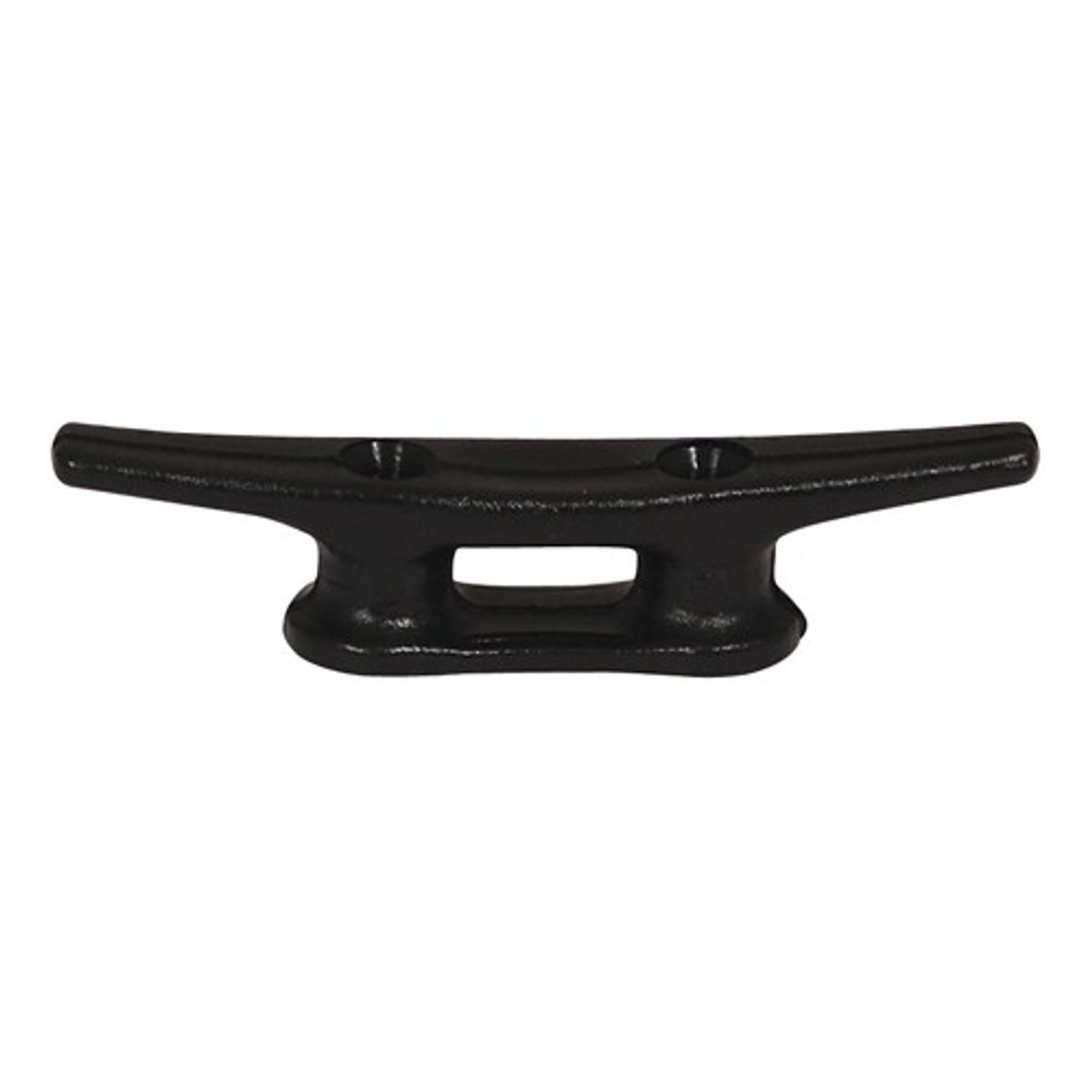 Trem deck cleats constructed from black nylon. Deck Cleats are designed for attachment to the deck or other flat surface, having both a wide base attaching with 2 screws, and a hole in the base so a spliced eye can be run through it and slipped over the Cleat.