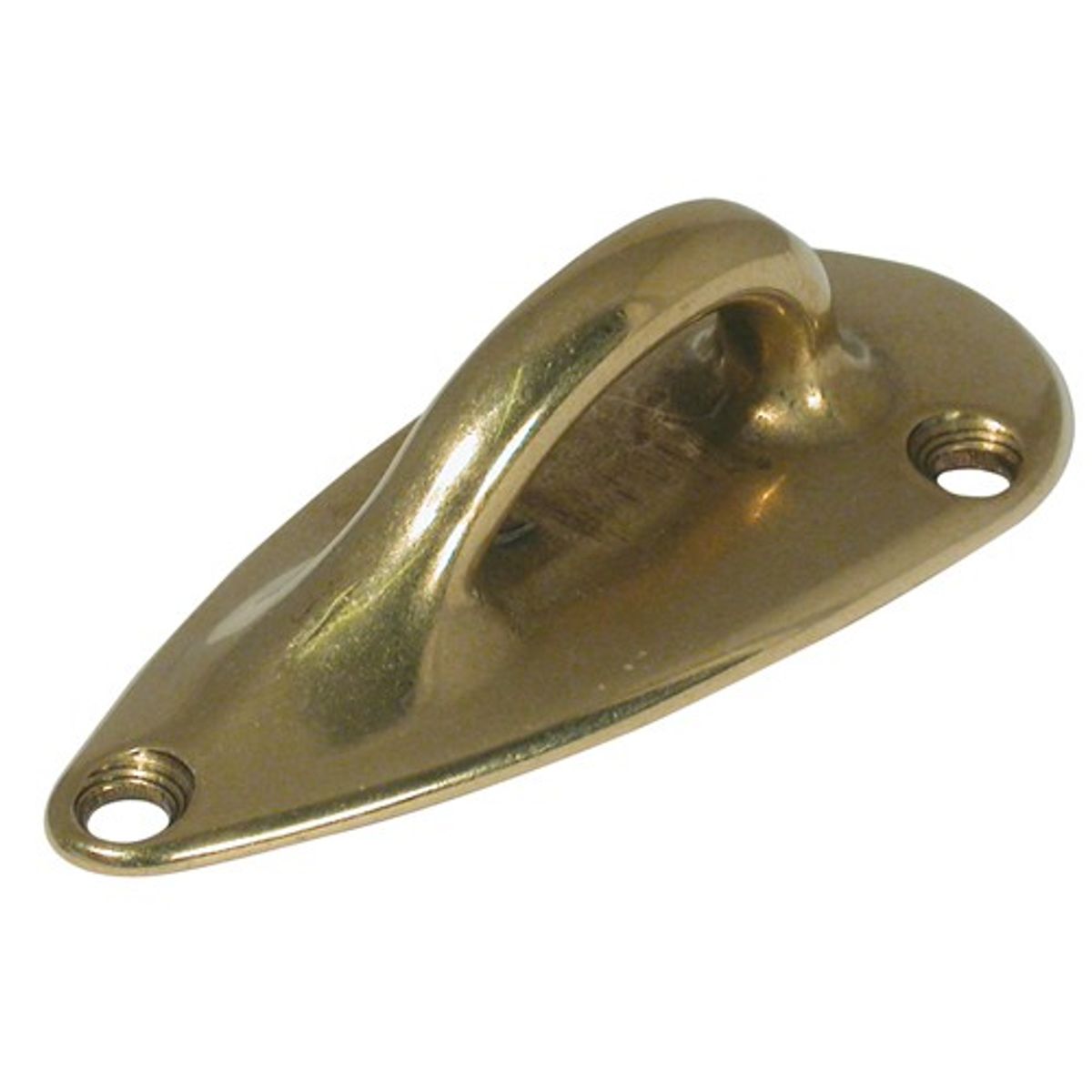 Brass tear drop shape fender eye plate to help loop fender ropes through to hold fenders in position when hanging them from boat hulls. The fixing plate measures 80mm L x 35mm with 3 predrilled holes.