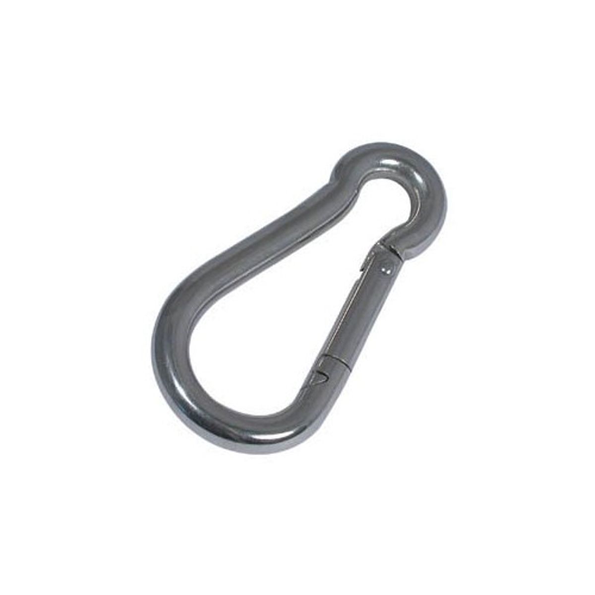 AG carbine snap hook constructed from polished stainless steel AISI 316. This carabiner is perfect for hooking wires or ropes.