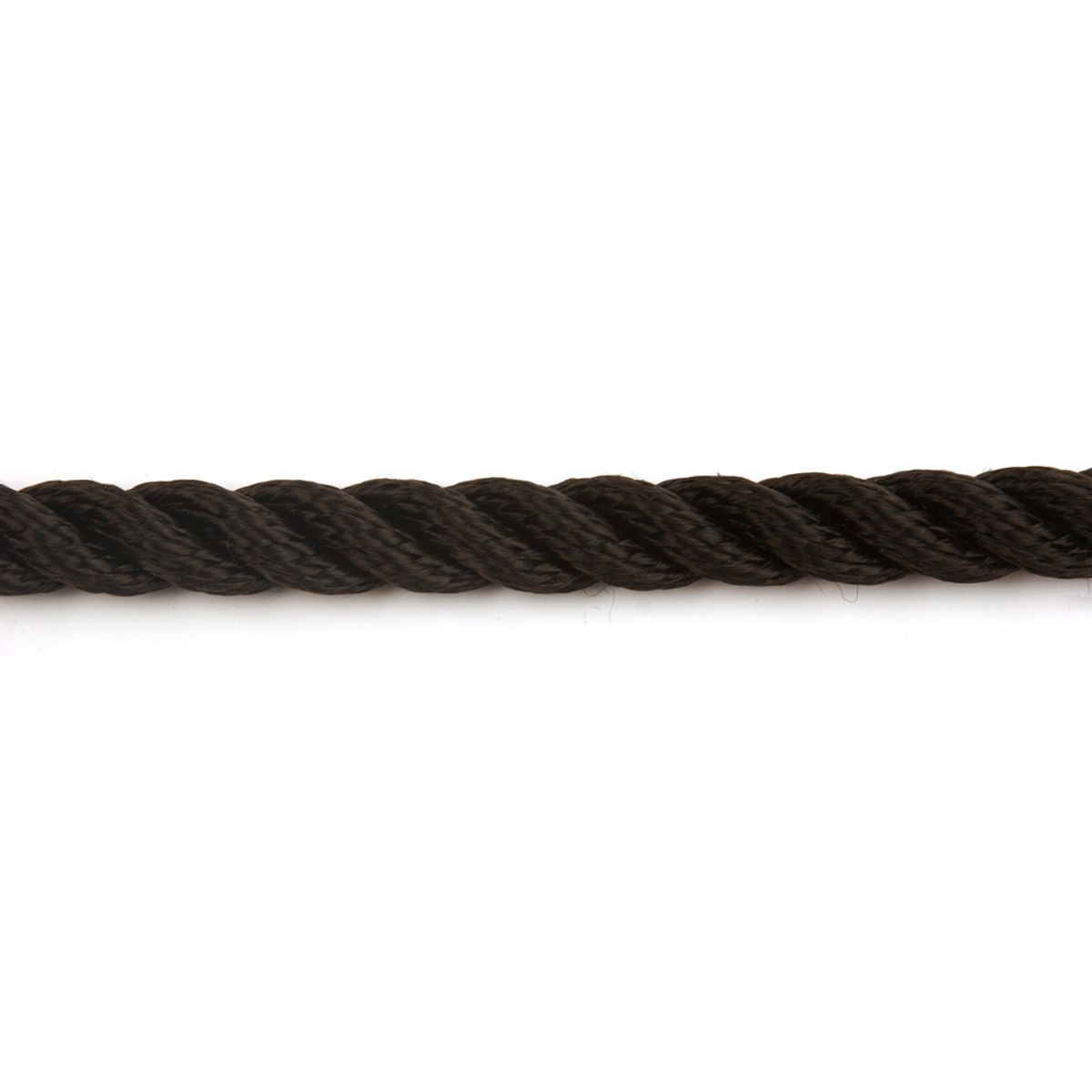 Three strand black mooring rope constructed from polypropylene, making it lightweight but strong. Perfect for anchoring, mooring and for use as fender lines.