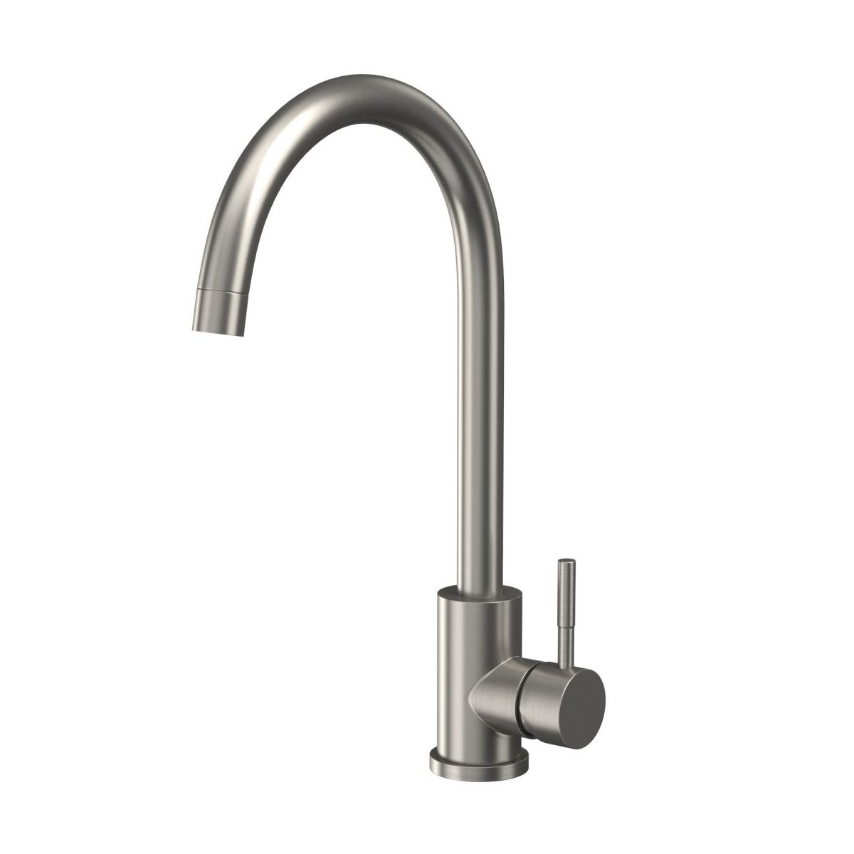 Manhattan kitchen mixer tap with a brushed stainless steel finish and curved swivel spout.