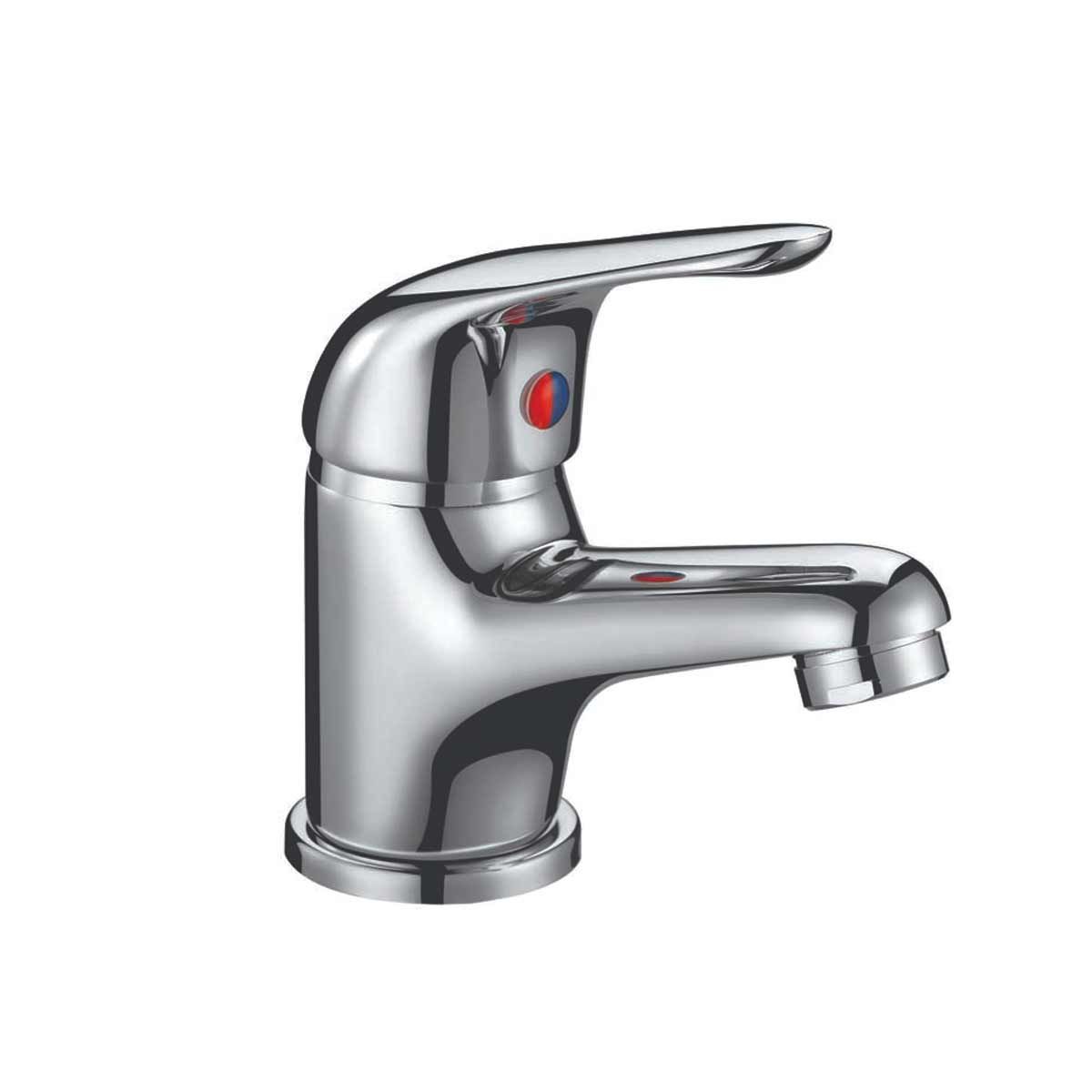 Mono basin mixer with a 35mm push button waste and sleek chrome finish.