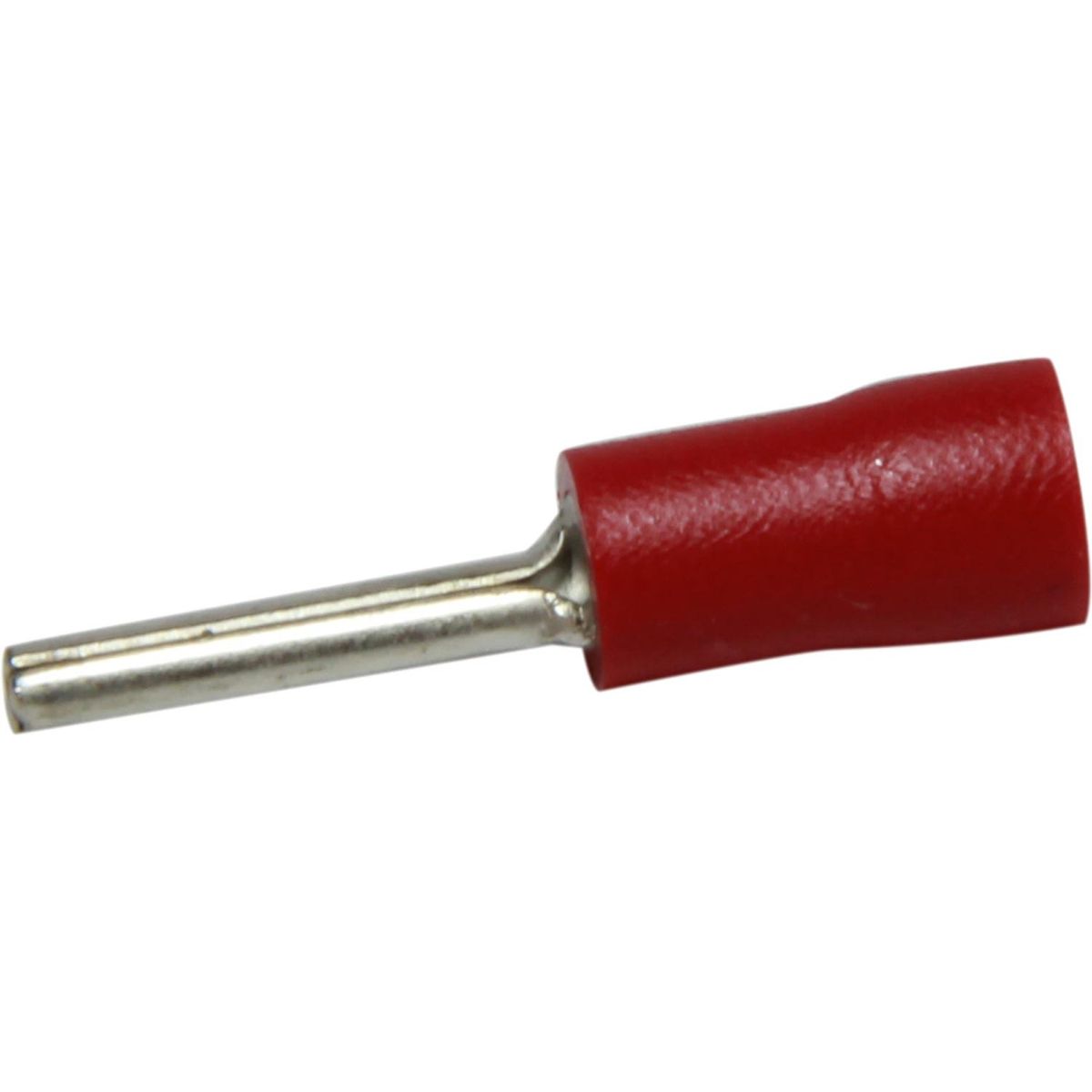 This pack of 50 red bullet crimp terminals is from the Auto Marine range. The red sleeve colour signifies that the terminal will suit conductors between 0.5mm² and 1.5mm². These are pre-insulated male bullet terminals that are made from tinned copper. These red crimp terminals measure 1.9mm in width.