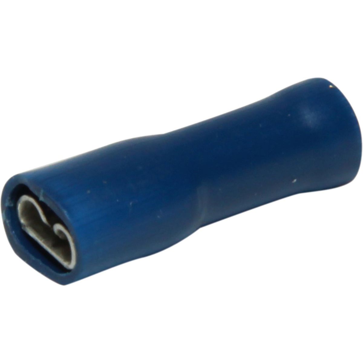 Pack of 50 blue spade crimp terminals from the Auto Marine range. The blue sleeve colour signifies that the terminal will suit conductors between 1.5mm² and 2.5mm². These are pre-insulated female spade terminals and are made from tinned copper.