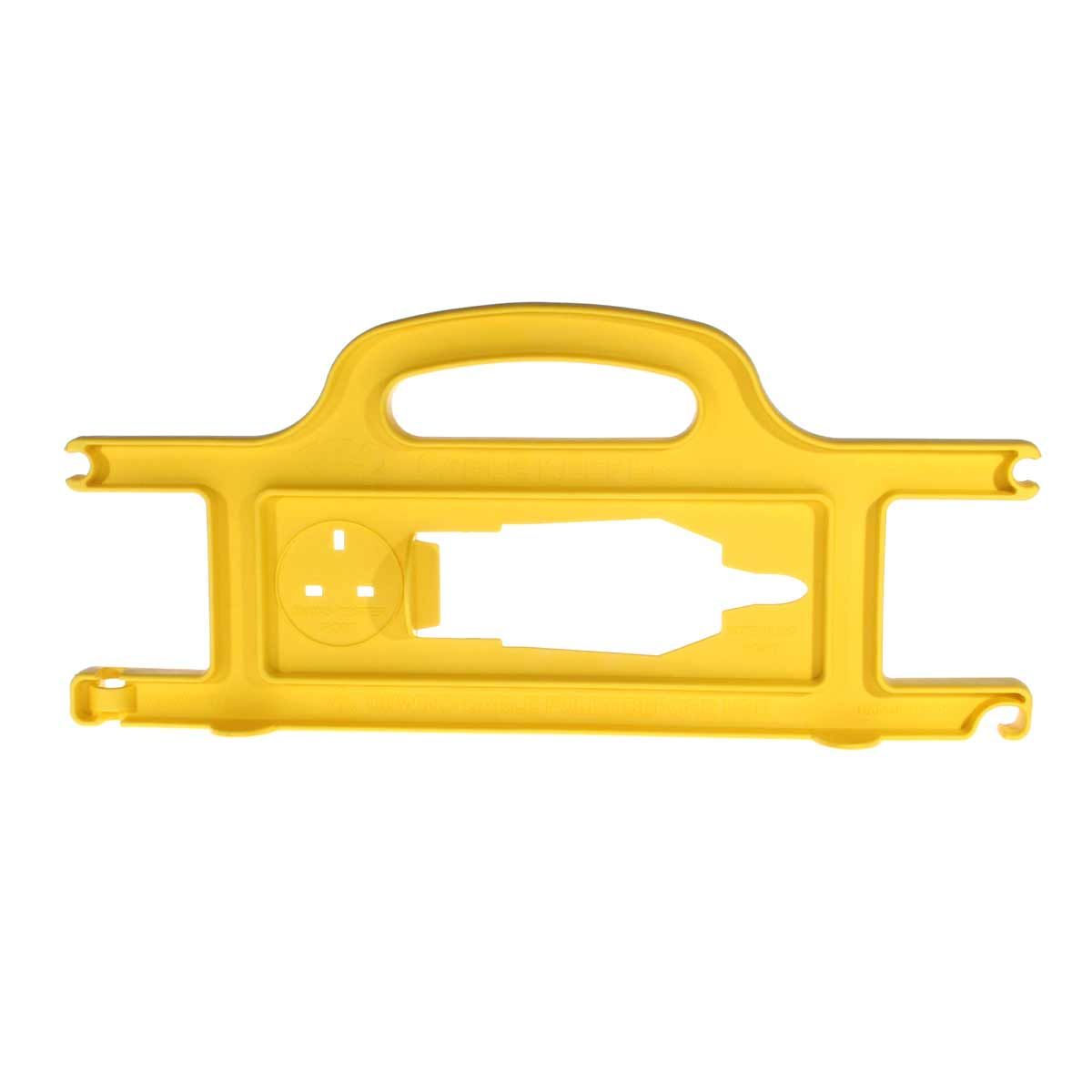 W4 cable keeper makes coiling mains hook-up leads look neat and easy. The cable tidy is lightweight with a toughened nylon construction. Will sit firmly on the floor during transit and can be hung on the garage wall for storage. The unique plug grip makes it difficult to connect the lead without it being fully uncoiled, a built in safety feature. Capacity: 25 metres 3 core 2.5mm cable.