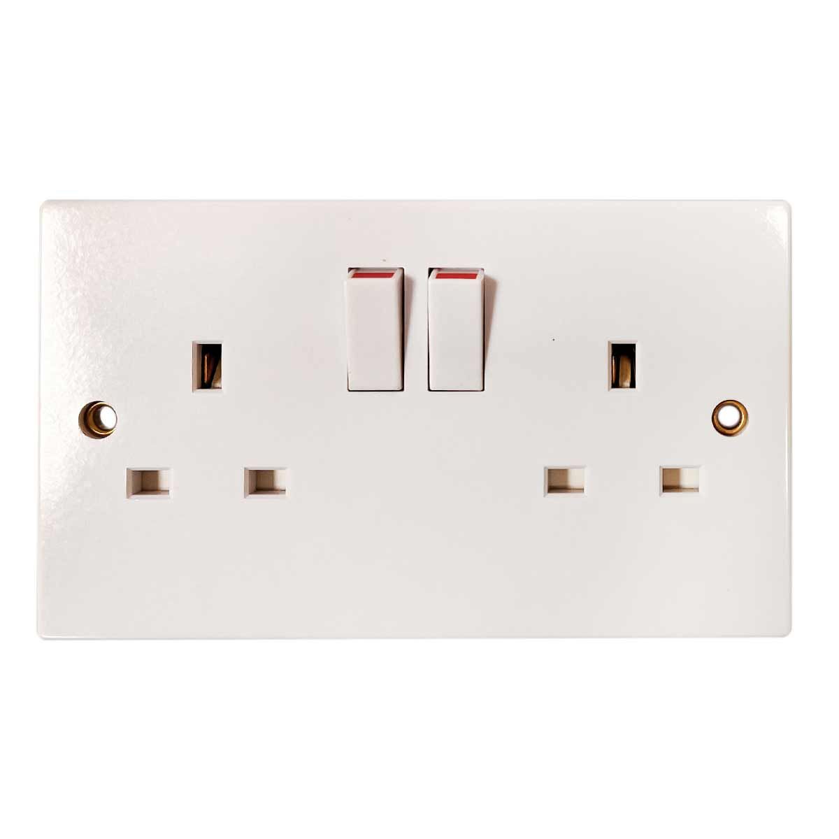 Square Edged Double Socket in White (2 Switches / Double Pole)