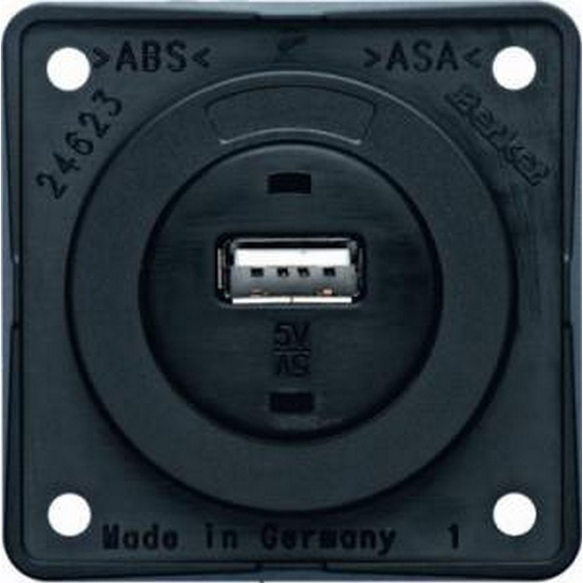 This W4 Berker USB charging socket is suitable for USB Type A charger cables. The charger socket has an input voltage of 12V DC, with a 5V DC output voltage. No data transmission possible.