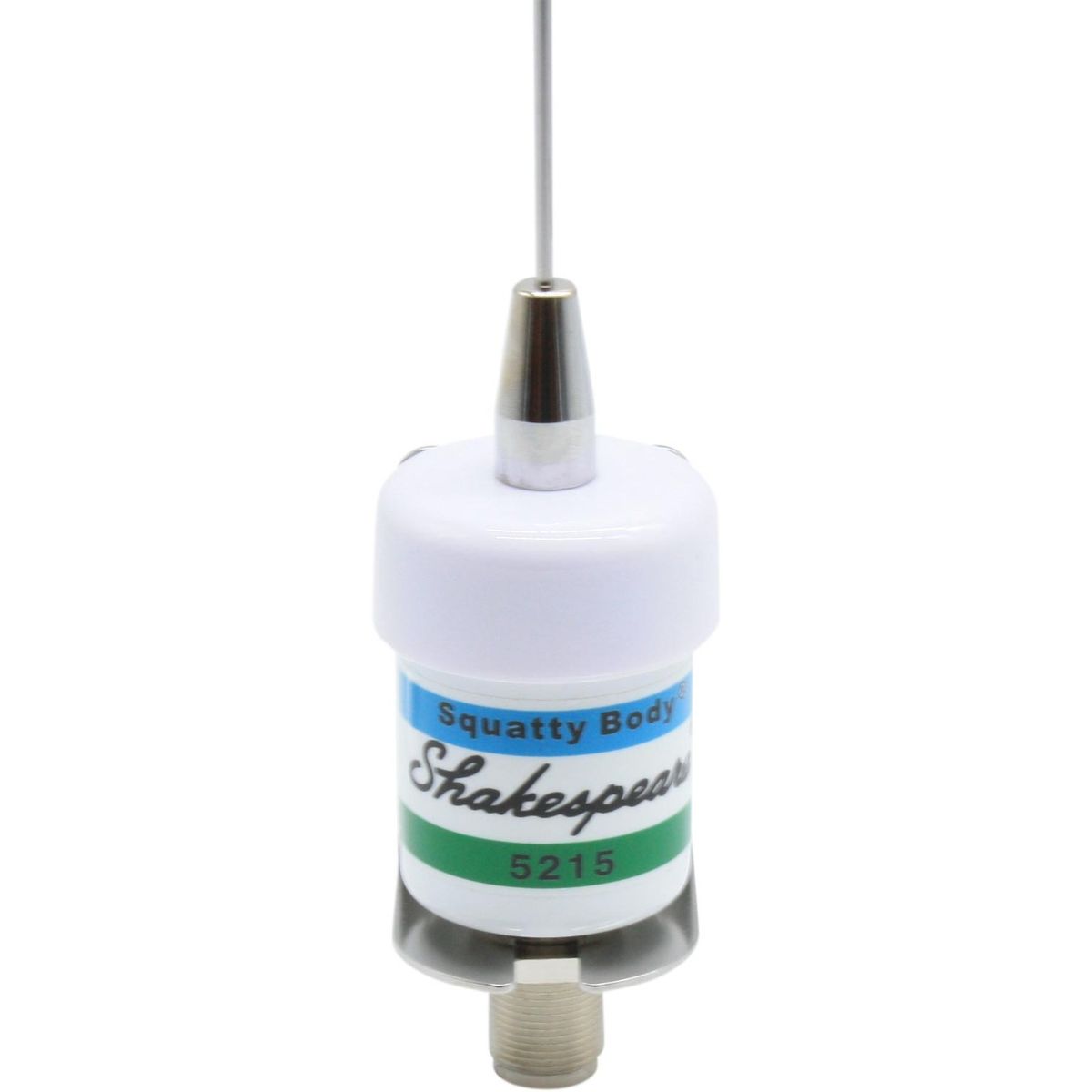 The Shakespeare V-Tronix Squatty Body VHF Antenna features a stainless steel whip and is supplied with an L shaped mounting bracket and hex back nut