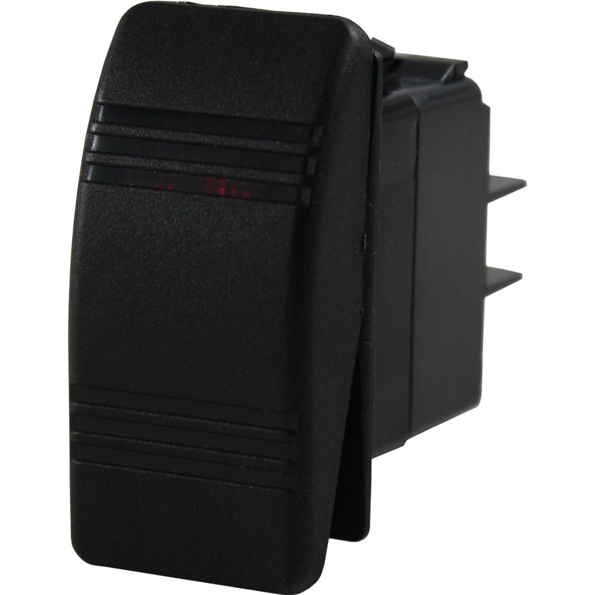 Carling series rocker switch and body suitable for use with boat electrical systems. The switch is ignition protected and constructed from black plastic with a 24 volt led light. This rocker switch is waterproof making the switch suitable for marine use.