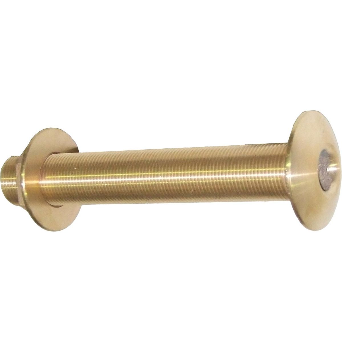 Maestrini threaded skin fitting made from bronze. This material is tough and corrosion resistant making it suitable for exposure to sea water. A skin fitting connects to a threaded pipe and is designed for through hull applications. This skin fitting features a traditional domed head style and is supplied with a bronze fixing nut. It has a long thread making it suitable for commercial applications as well as leisure.