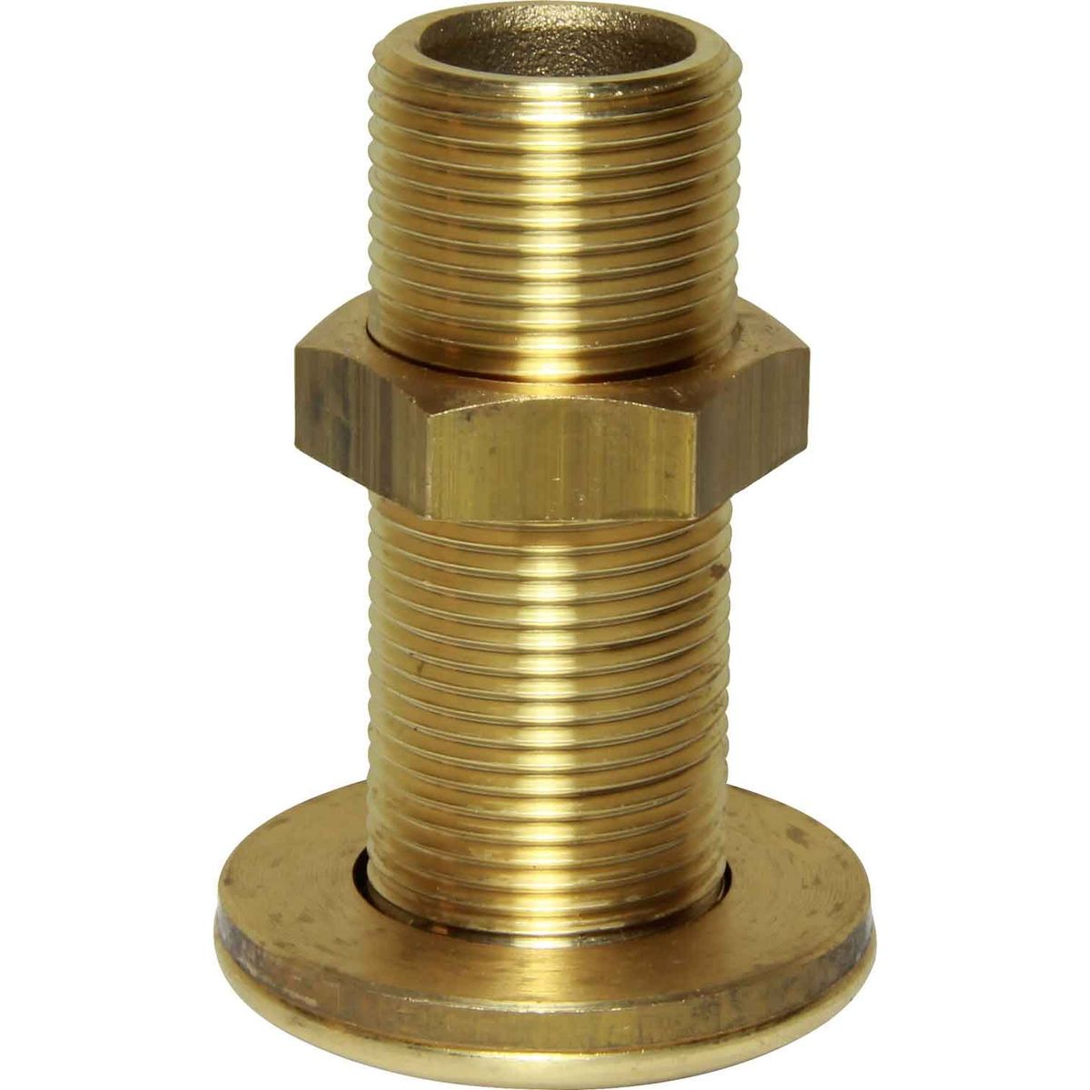 Maestrini threaded skin fitting made from dezincification resistant brass (DZR), also known as CR brass which stands for corrosion resistant. This material is a brass alloy which prevents corrosion, caused by the loss of zinc in the fitting, making it suitable for exposure to sea water. A skin fitting connects to a threaded pipe and is designed for through hull applications. This skin fitting features a traditional domed head style and is supplied with a brass fixing nut and washer.