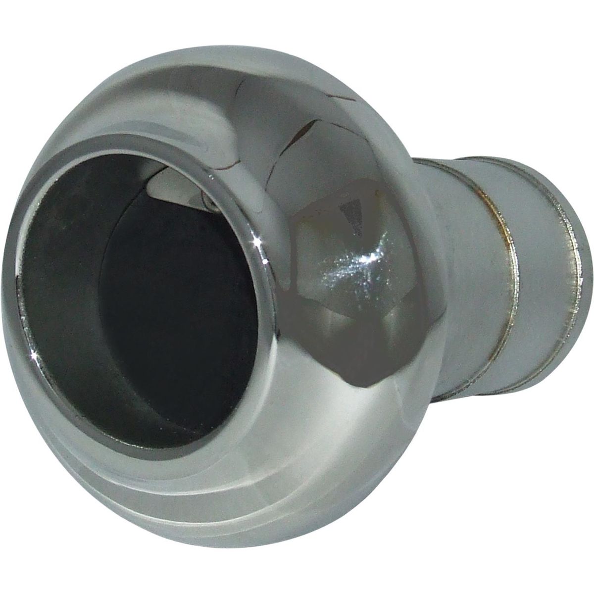 This exhaust outlet is made of mirror polished AISI 316 stainless steel and is mounted using 4 x 6 mm fixing studs (not included). The outlet pipe has an outside diameter of 40mm.