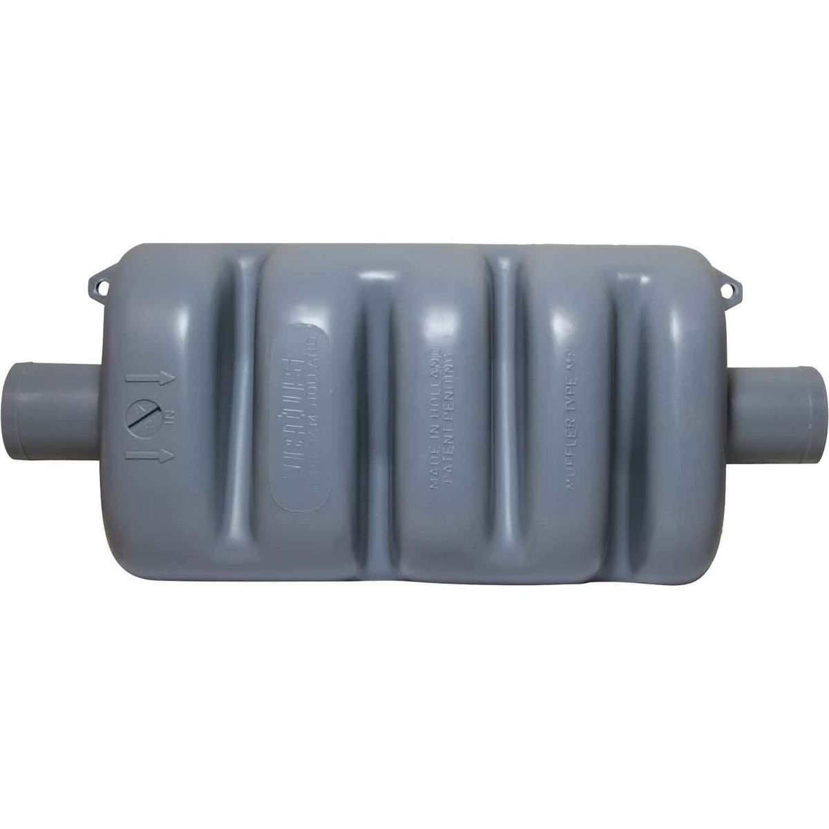 Vetus MP45 marine exhaust muffler constructed from plastic, designed to reduce noise from the exhaust system. This muffler creates additional mixing of the water inside the exhaust line to create better noise reduction. Exhaust gas can flow freely through the muffler as the construction causes almost no resistance.
