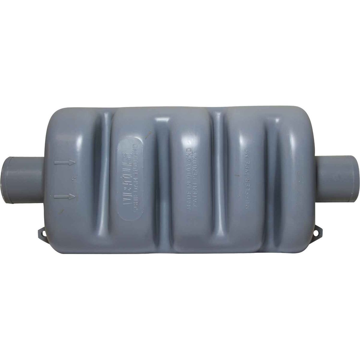 Vetus MP50 marine exhaust muffler constructed from plastic, designed to reduce noise from the exhaust system. This muffler creates additional mixing of the water inside the exhaust line to create better noise reduction. Exhaust gas can flow freely through the muffler as the construction causes almost no resistance.