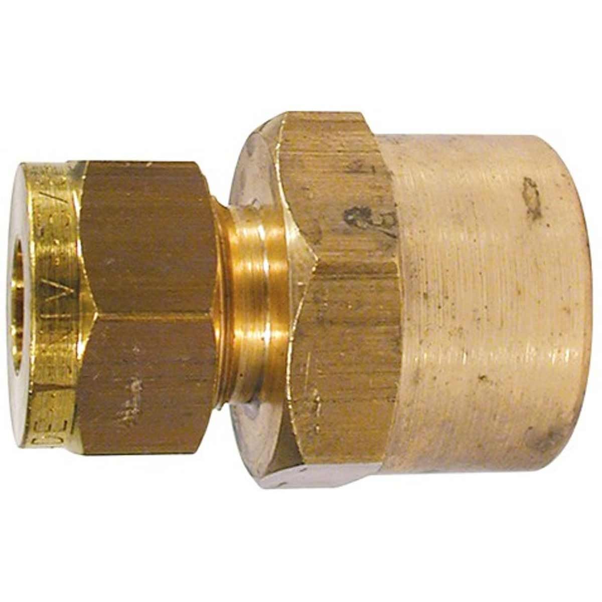 A female stud compression coupling in brass, supplied with compression olive and nut. The compression union has a 3/8″ BSP female tapered thread one end and a 1/4″ compression fitting the other end.