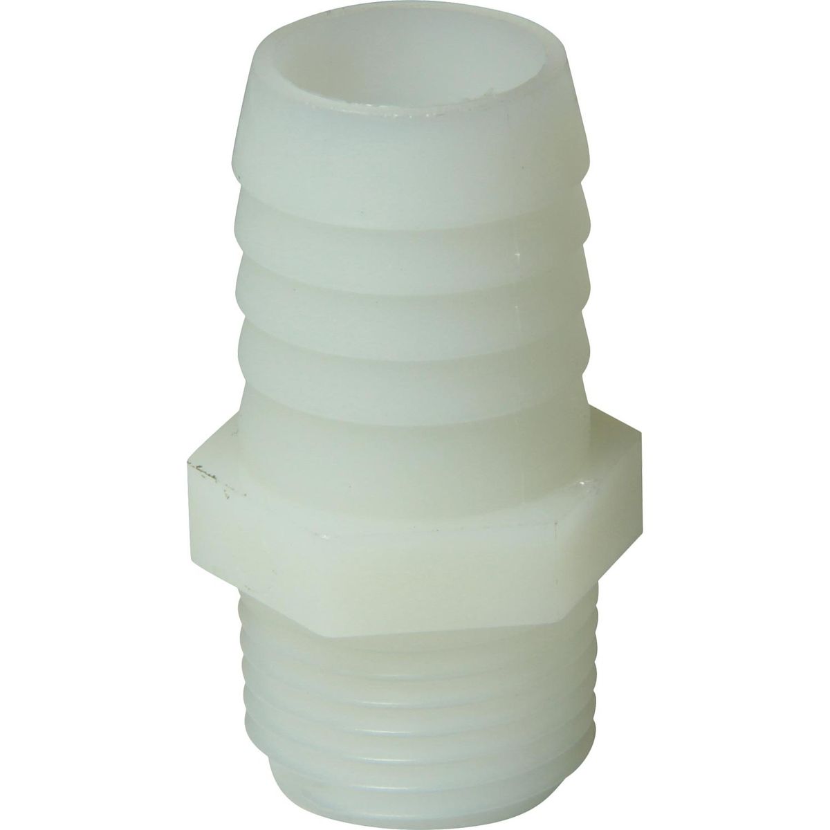 AG straight hose tail fitting made from plastic (nylon). This hose tail is not suitable for use with fuel but can be used below the waterline as it is unaffected by salt water corrosion. This hose tail is designed to adapt 1/2″ NPT threaded pipe to a 19mm hose connection.
