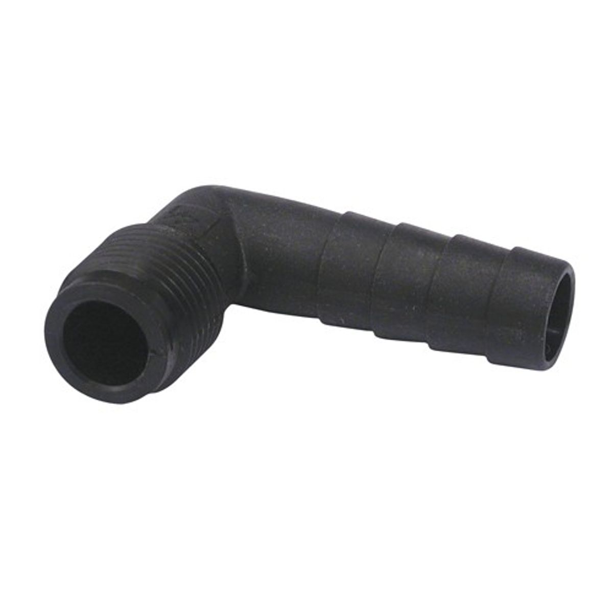 Forespar 90 degree hose tail elbow connector made of glass reinforced Marelon polymer. The hose tail union features a 1″ BSP Male threaded connection one end and a 1″ hose tail connection the other end.