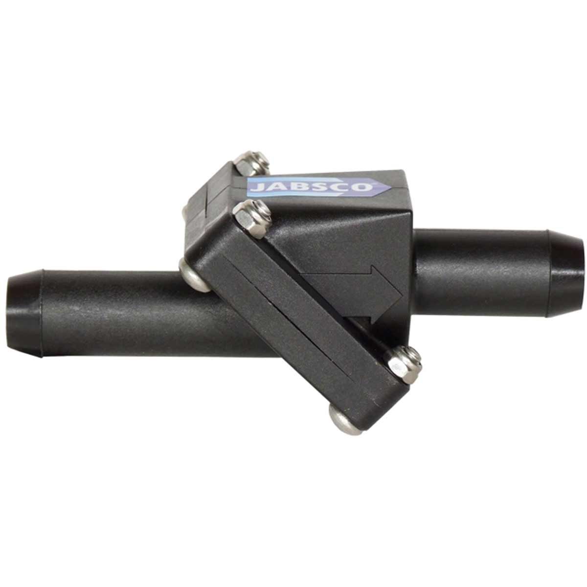Jabsco 29295-1011 non-return valve (check valve / NRV) featuring a robust plastic construction with a nitrile rubber valve. This check valve is suitable for use with manual and electric pumps, including the Jabsco Amazon range. It is suitable for use with 19mm (3/4″) ID hose, fitting into pump suction line to aid pump priming and prevent backflow from pump into bilge.