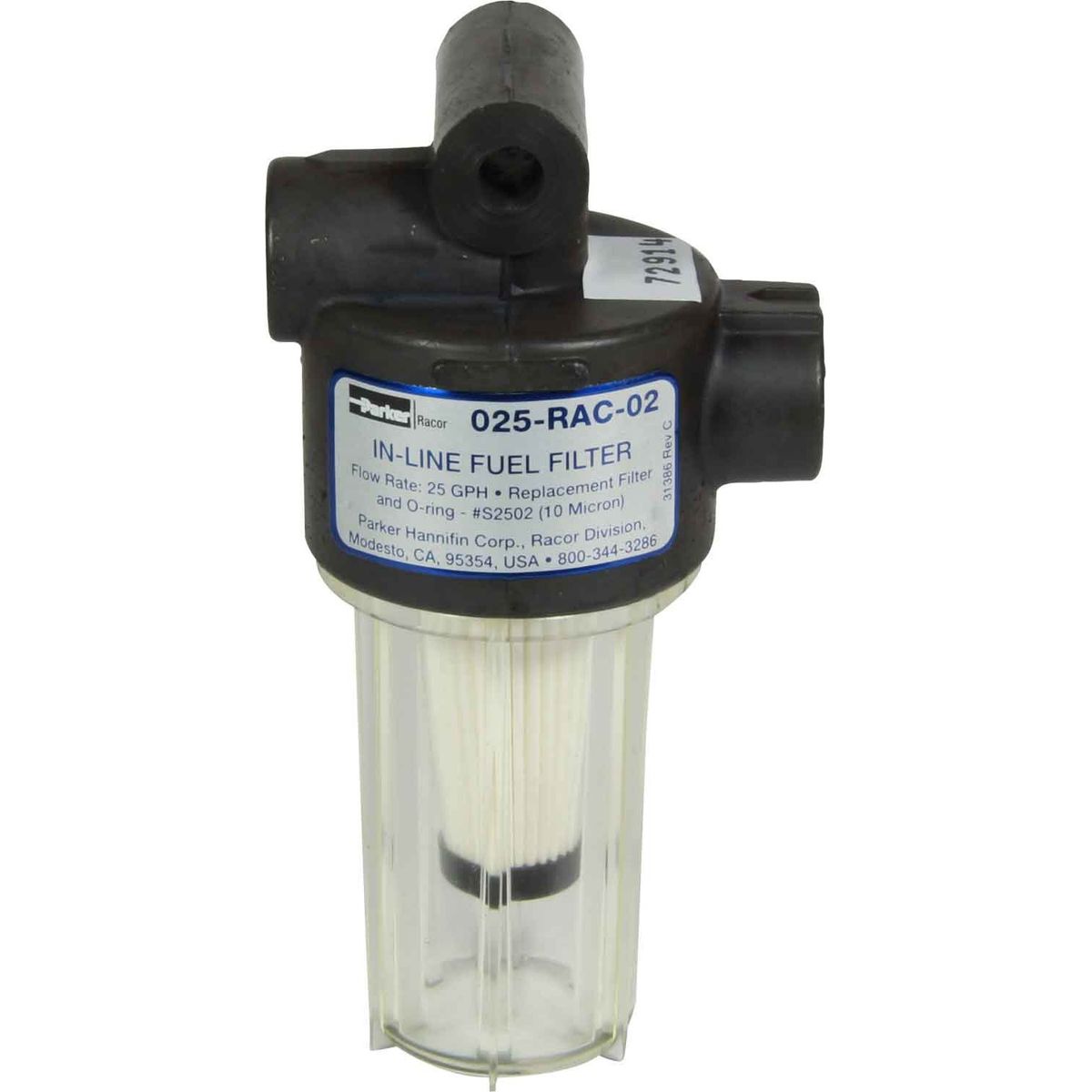 Racor 025-RAC-02 in-line petrol (gasoline) fuel filter is designed for use with small petrol engines. Typical applications include small outboard engines, personal watercraft, small gensets, snow machines and lawn mowers. The Racor 025-RAC-02 has a compact design allowing for easy installation and service. The Racor 025-RAC-02 is also a water separator.