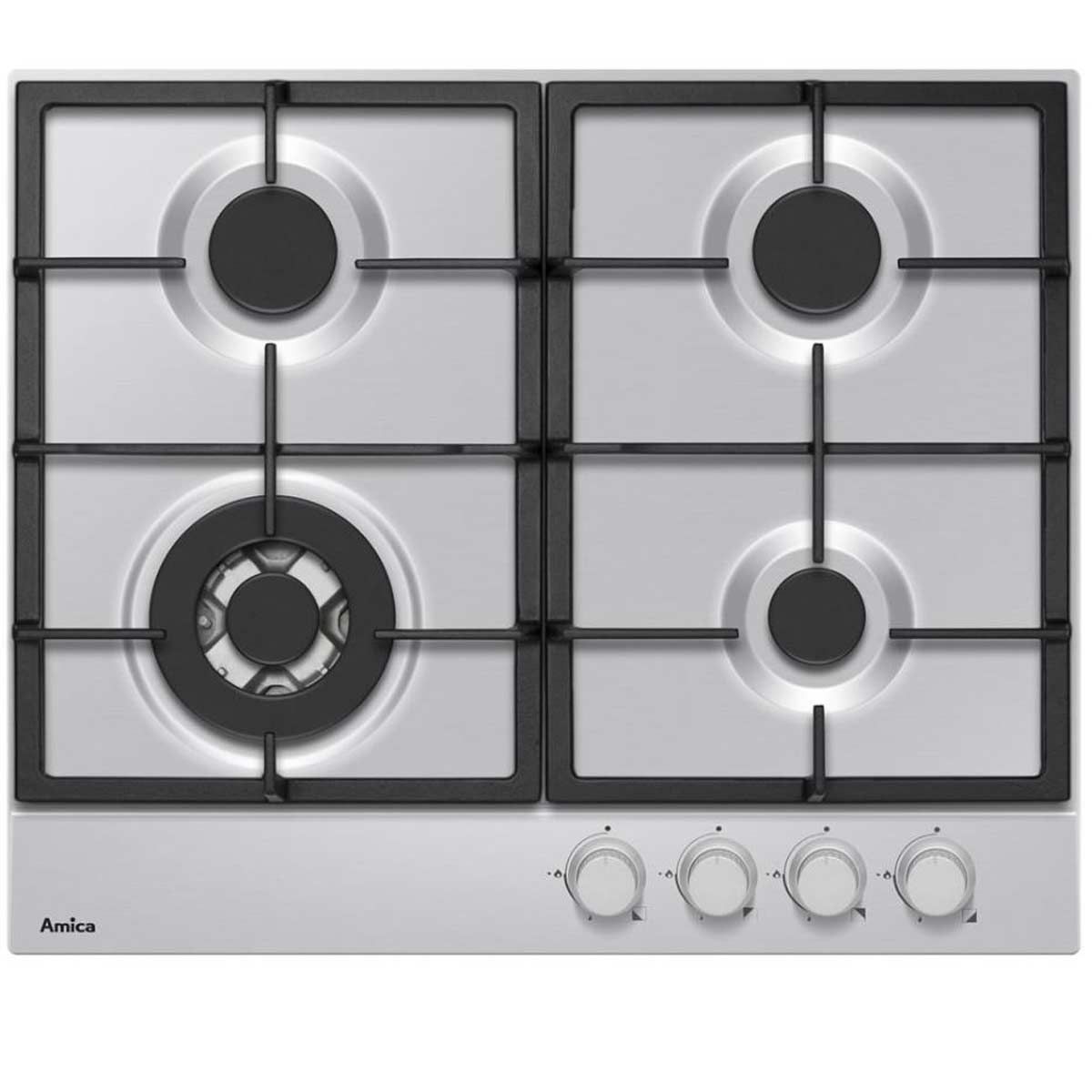 A four burner, stainless steel gas hob with a stylish design and front control. The hob also a range of different burners to accommodate cooking needs, along with robust cast iron pan supports and automatic ignition. LPG conversion kit included.