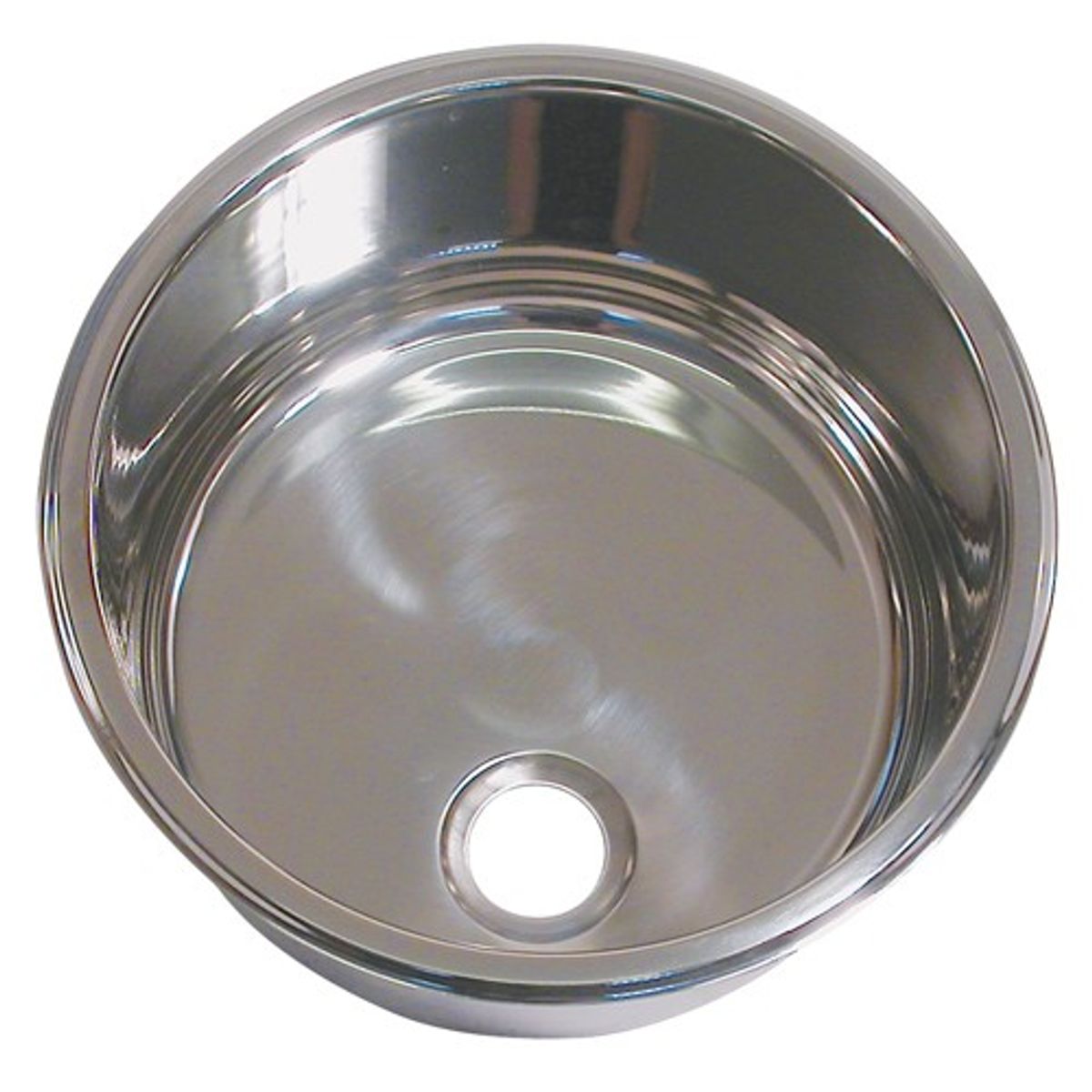 Round sink made from stainless steel, 300mm inner diameter x 180mm depth.