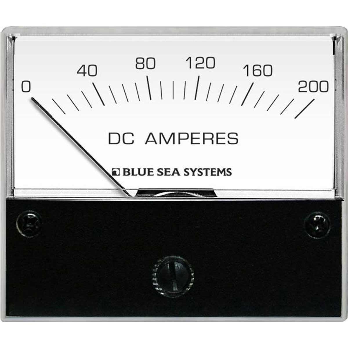 Blue Sea 8019 DC analogue ammeter 0-200A with simple 4 wire connection from shunt – no other power required. The meter senses and powers from shunt connection.