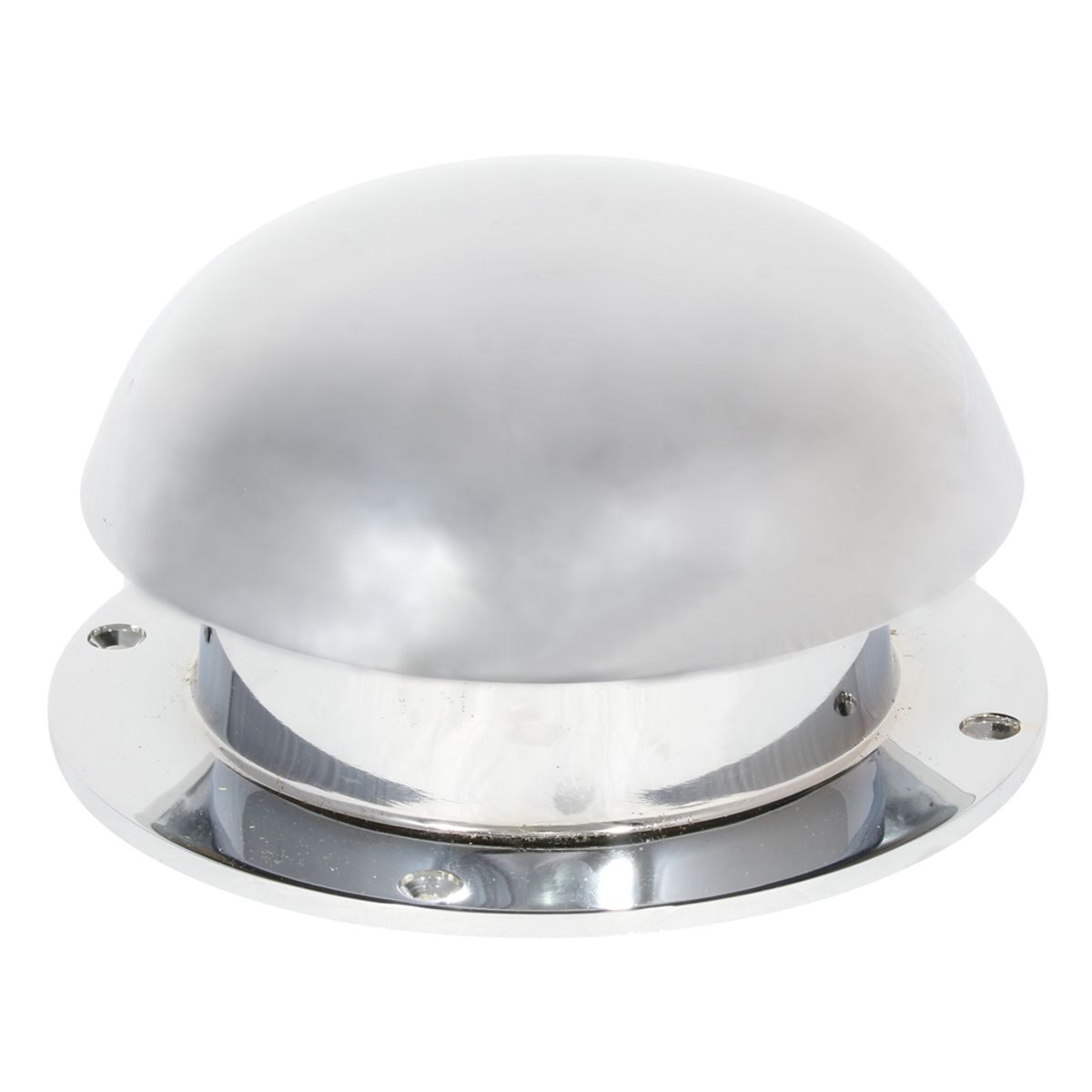 A solid chrome plated brass permanently open domed mushroom vent that is 90 mm high at its lowest, adjustable to 125mm at its highest extent. It has a 100mm inside diameter, and 155mm outside diameter. The most commonly used roof vent on canal boats.