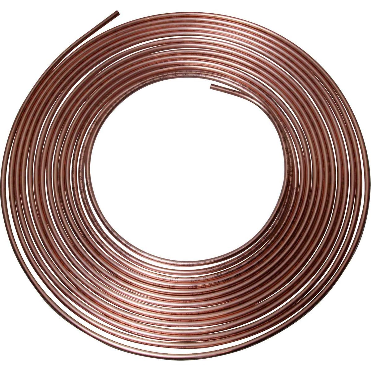 Annealed soft copper piping (20 SWG) is manufactured to BS EN 12735-1:2001 standards. This copper pipe is supplied in a 10 metre coil. The piping has an outside diameter of 3/16″ and is suited for a working pressure of 1978 psi The thickness of the hose wall is 0.711mm.