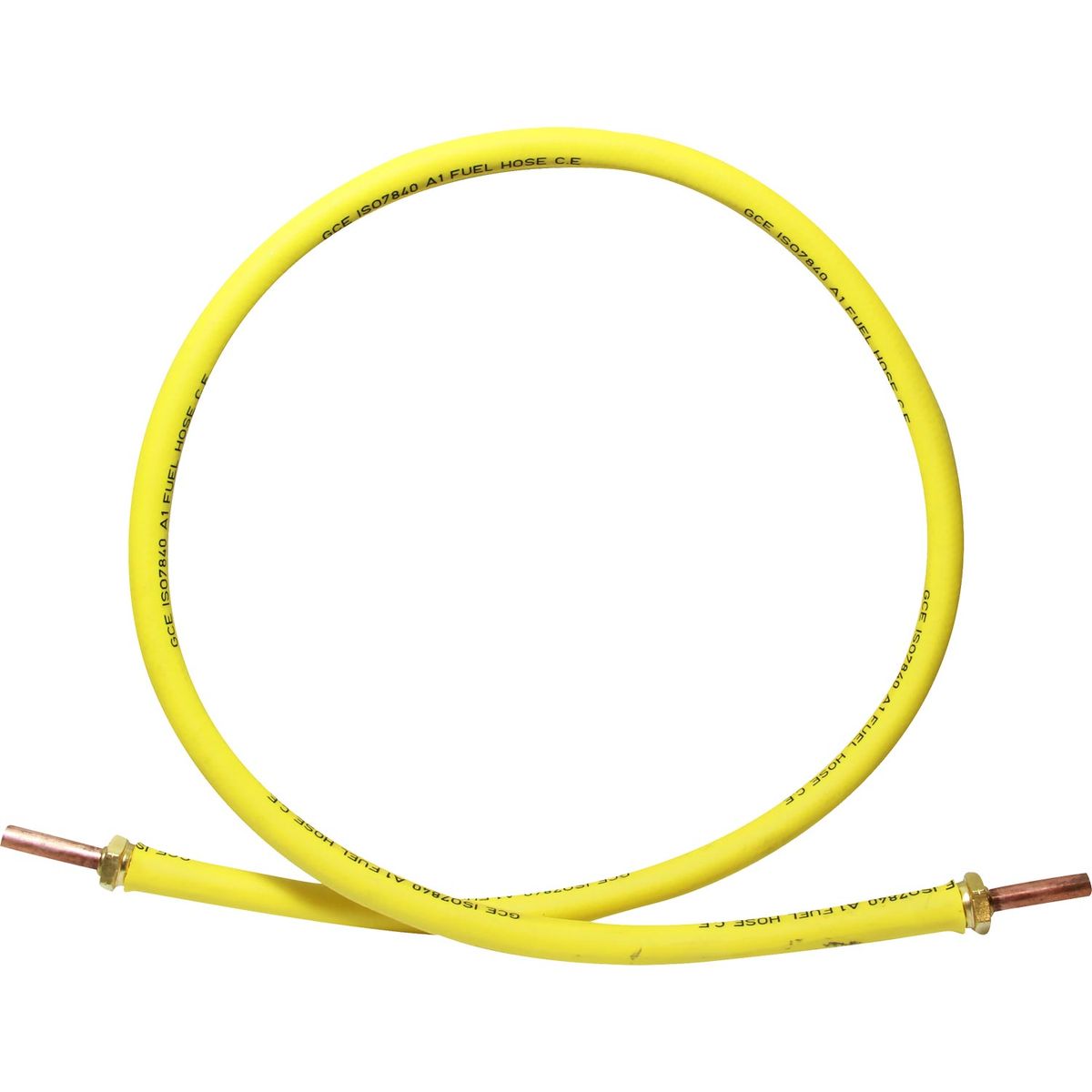 The fuel hose has a special nitrile rubber construction which has an inner metal support. Spigots on the end are heavy copper and swaged in brass, featuring a hexagonal collar for securing to a compression fitting.