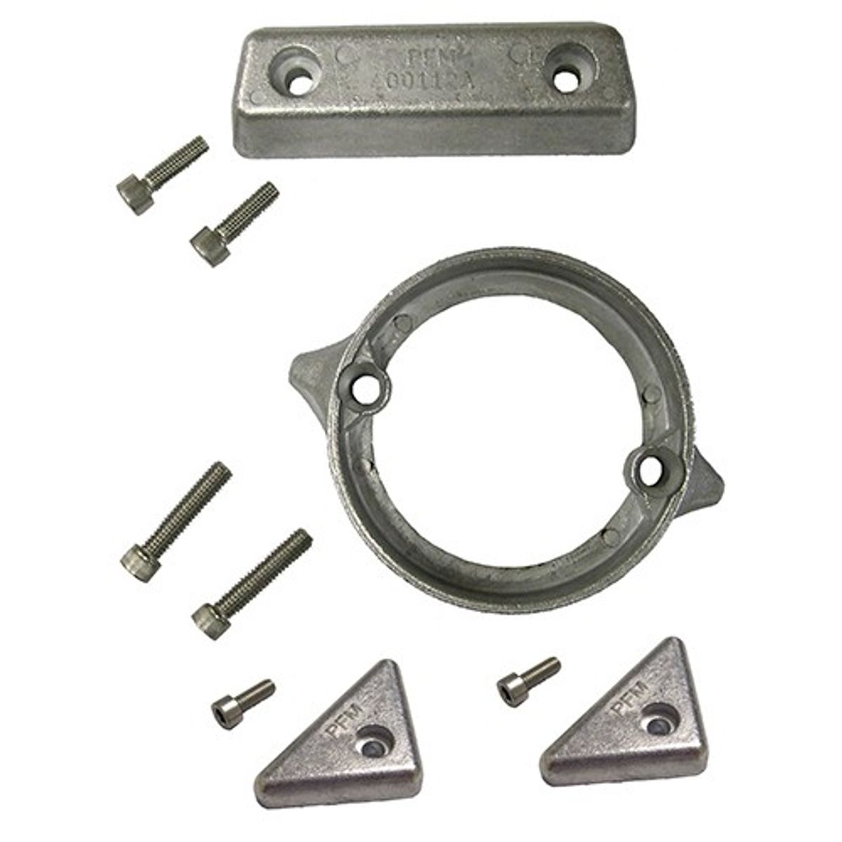 Performance Metals Navalloy¨ complete aluminium anode kit (including mounting hardware and installation instructions) used on Volvo Penta 290 duo prop outdrives for the export market. The anodes include the exclusive, patented “red spot” wear indicator. Pack Size: 5 1/2 x 11 x 2 3/4 (140mm x 280mm x 70mm).