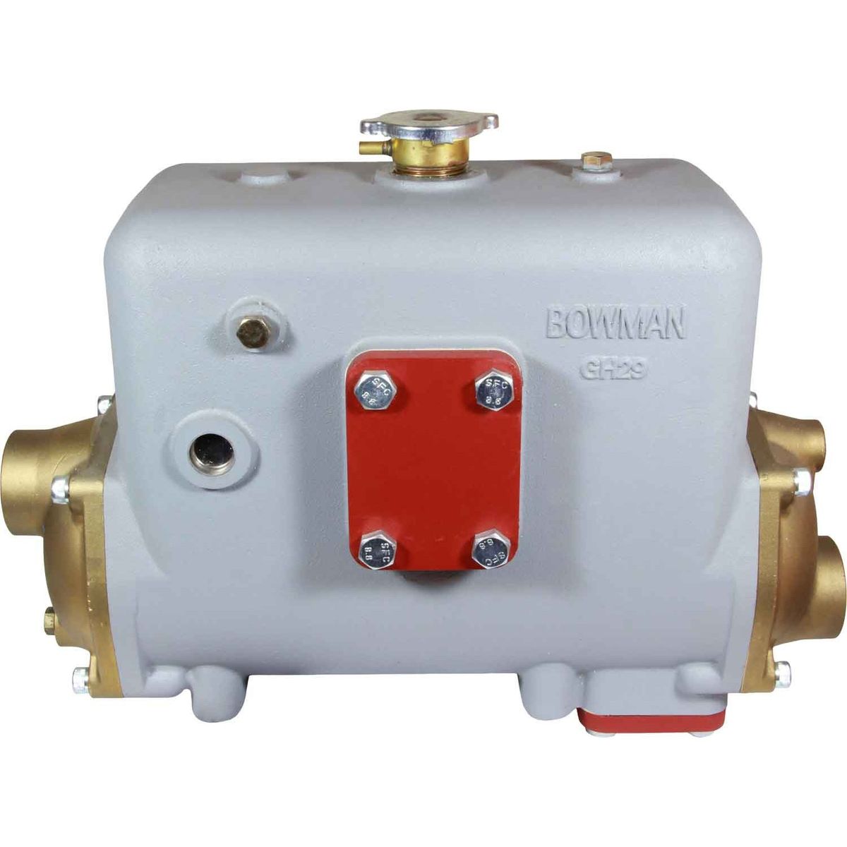 The Bowman GH200-3482-2 marine three pass header tank heat exchanger is typically suitable for 240kW / 322HP engines. This Bowman heat exchanger can be used with Mercedes OM401, OM421 and OM407 engines among others.